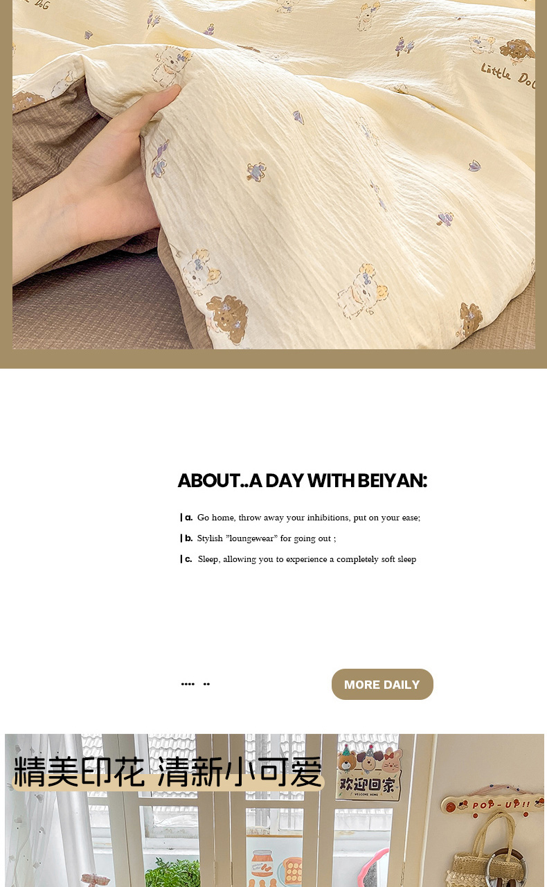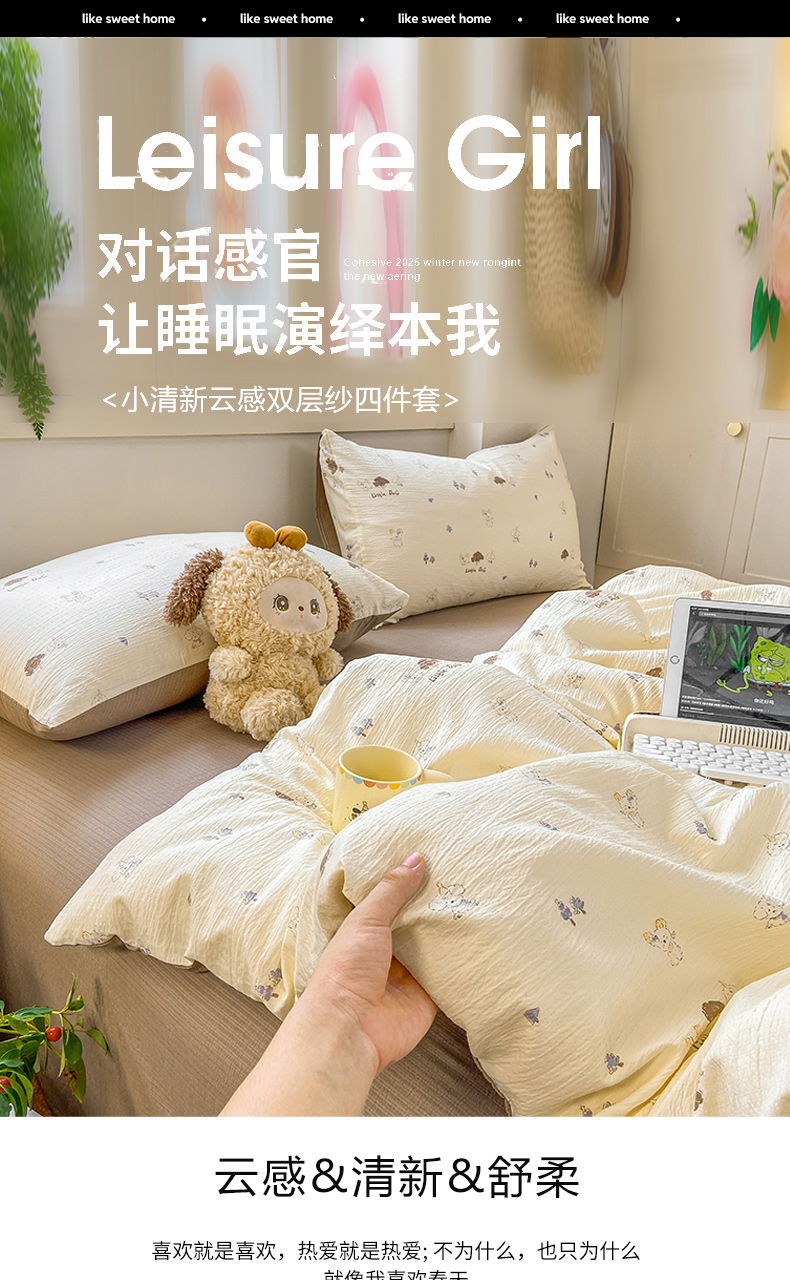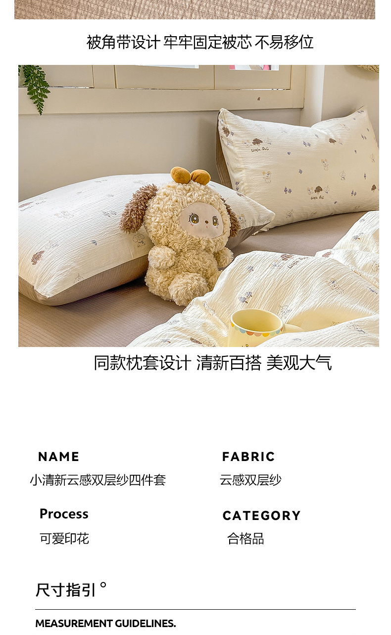 当前位置: 91家纺网 > 商品网购 > 床品套件 > 四件套 > 双层纱四件套 > 夜笙家纺 2025秋冬网红爆款110克水洗棉高克重皱皱纱(提供买家秀) 快乐伙伴