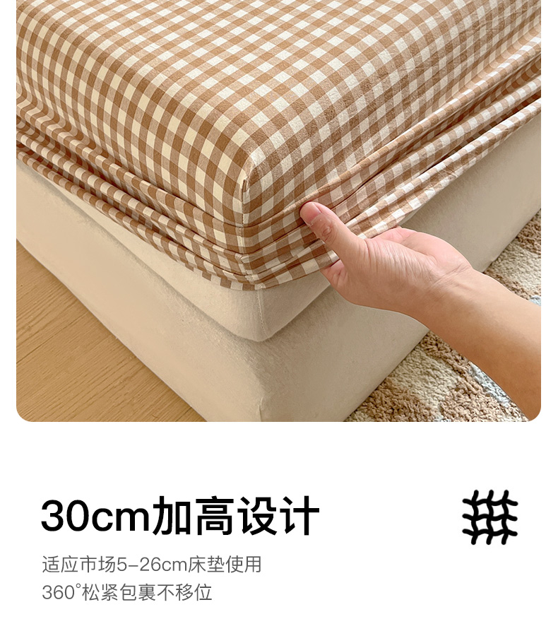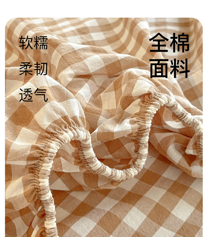 • 91家纺网 家纺一手货源 找家纺 卡姿家纺 2025春夏色织水洗棉单品床笠 水洗棉床笠-卡其格