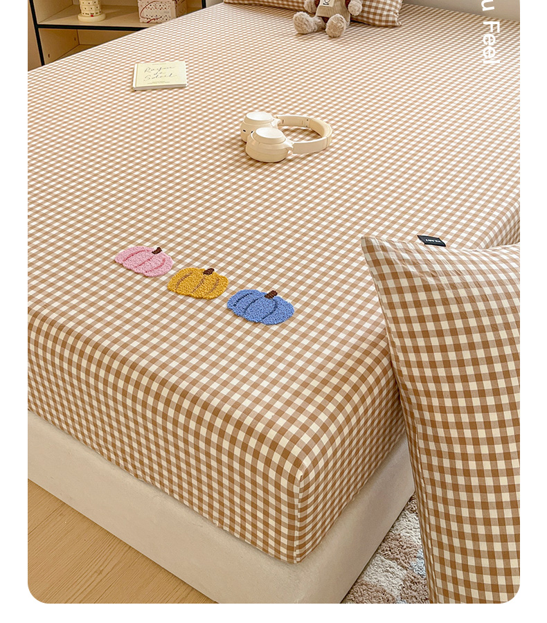 卡姿家纺 2025春夏色织水洗棉单品床笠 水洗棉床笠-卡其格