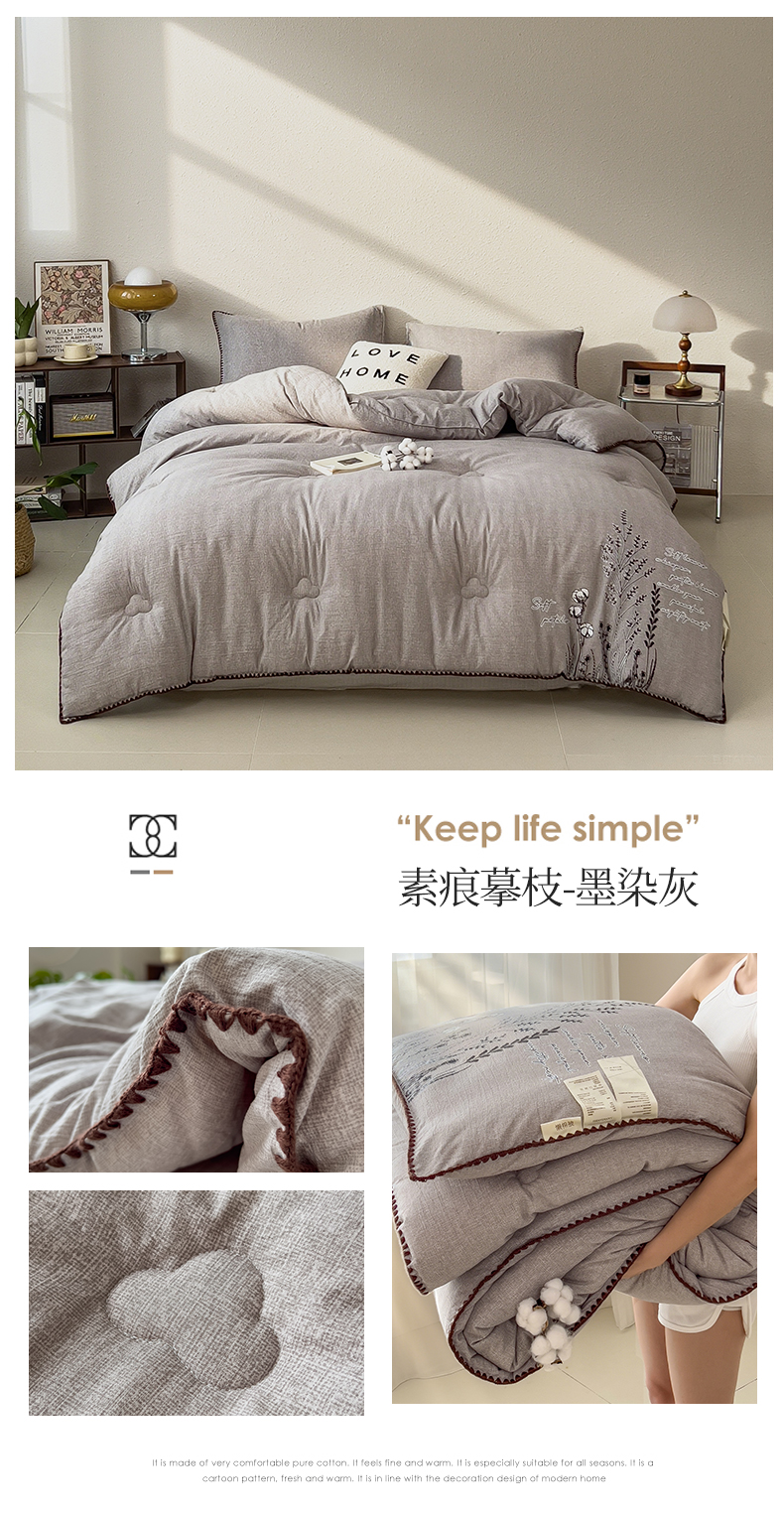 宝士康家纺 2025新品10A抗菌素麻棉花春秋被/冬被/被芯/跨境外贸 素麻-墨染蓝