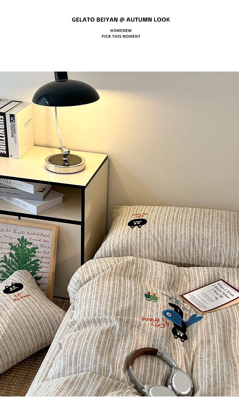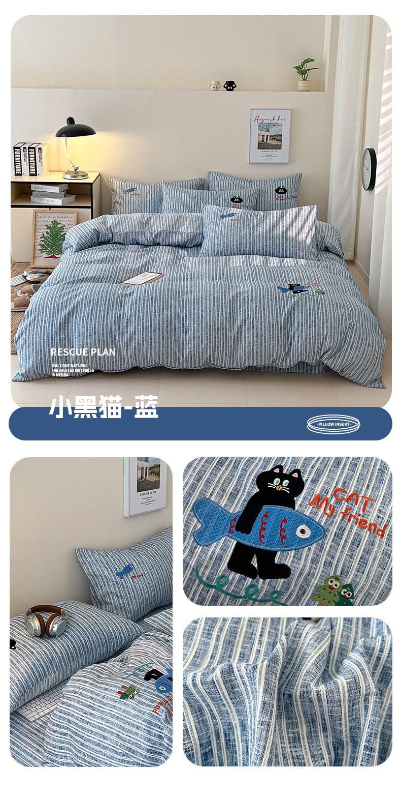 当前位置: 91家纺网 > 商品网购 > 床品套件 > 四件套 > 棉麻四件套 > 奥汀洛家纺 2025新款ins小清新生态棉麻刺绣四件套 小黑猫系列 小黑猫-米