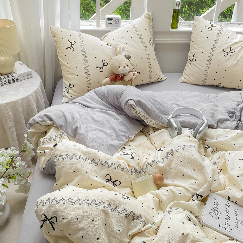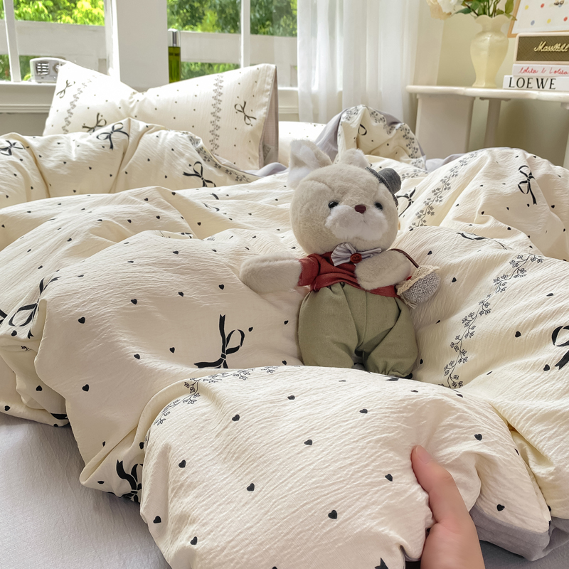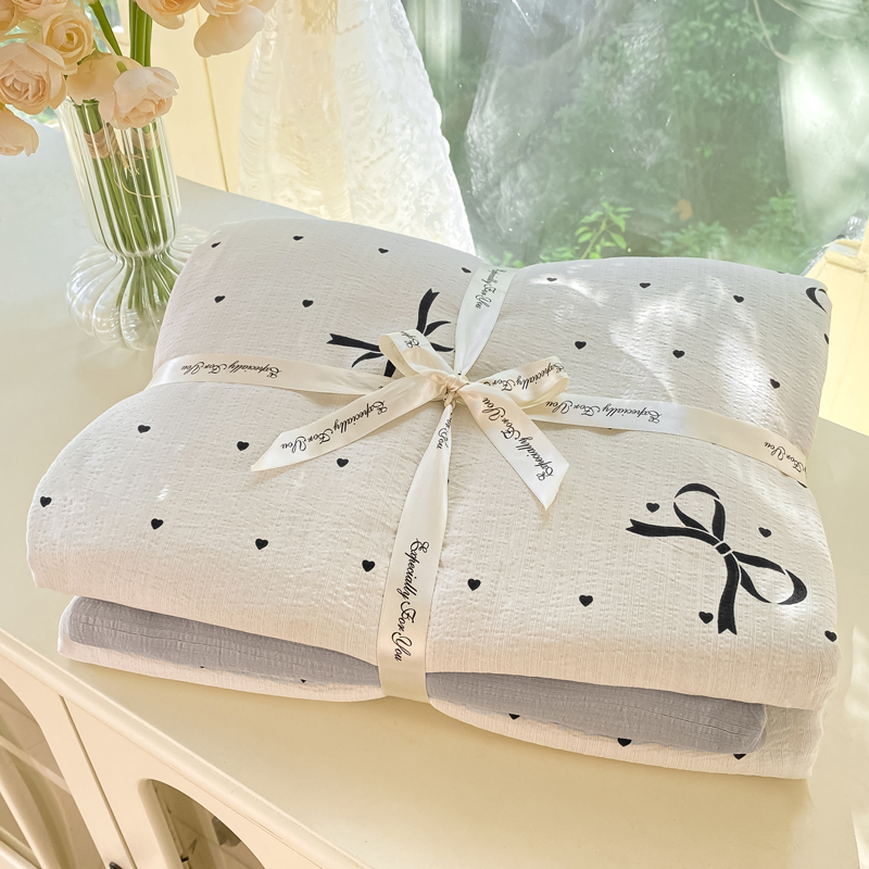 朵朵家纺 2025新款云感提花双层纱印花单品被套 法式蝴蝶结