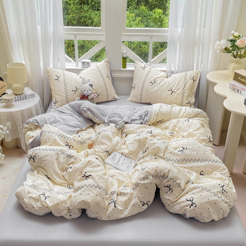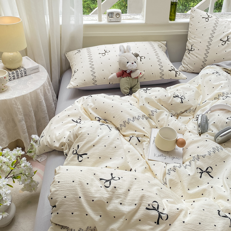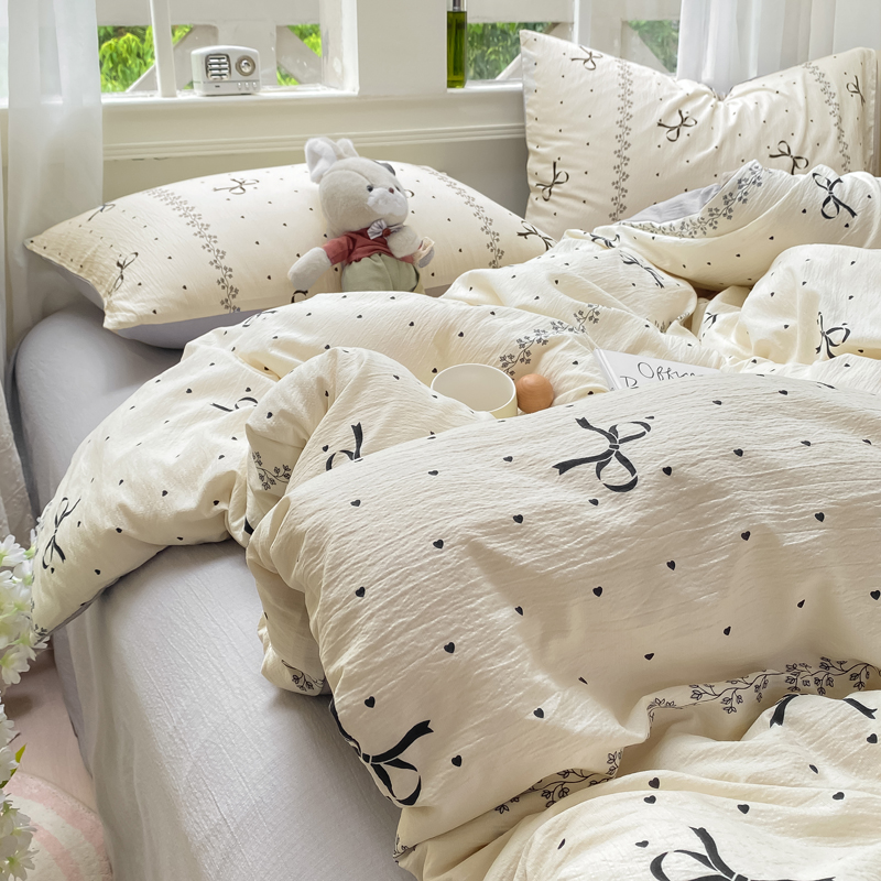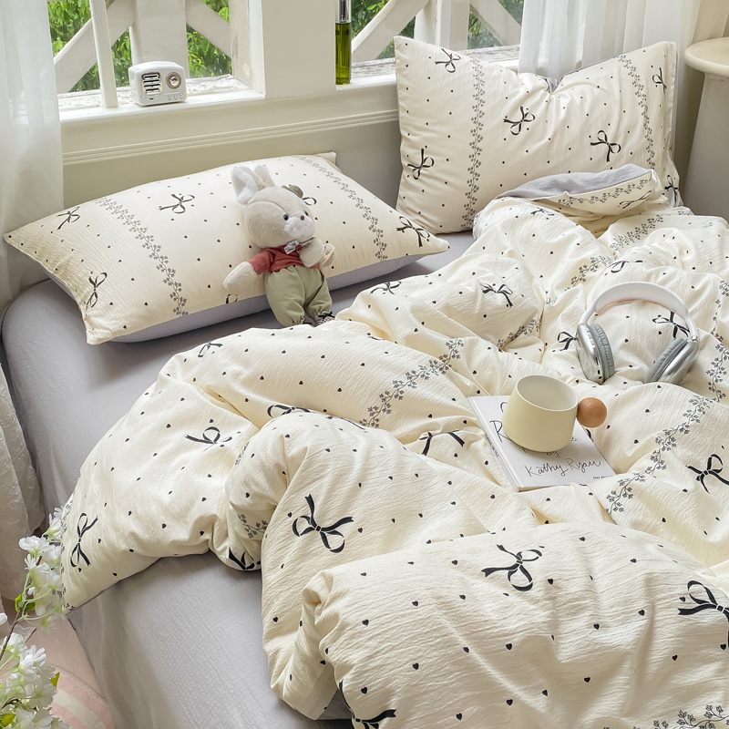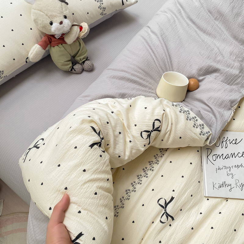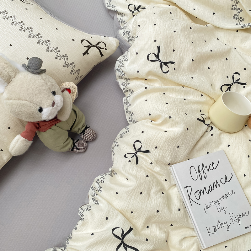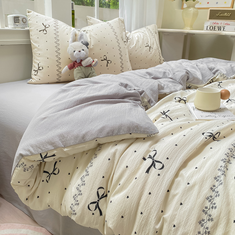 商品名称:朵朵家纺 2025新款云感提花双层纱印花单品被套 法式蝴蝶结