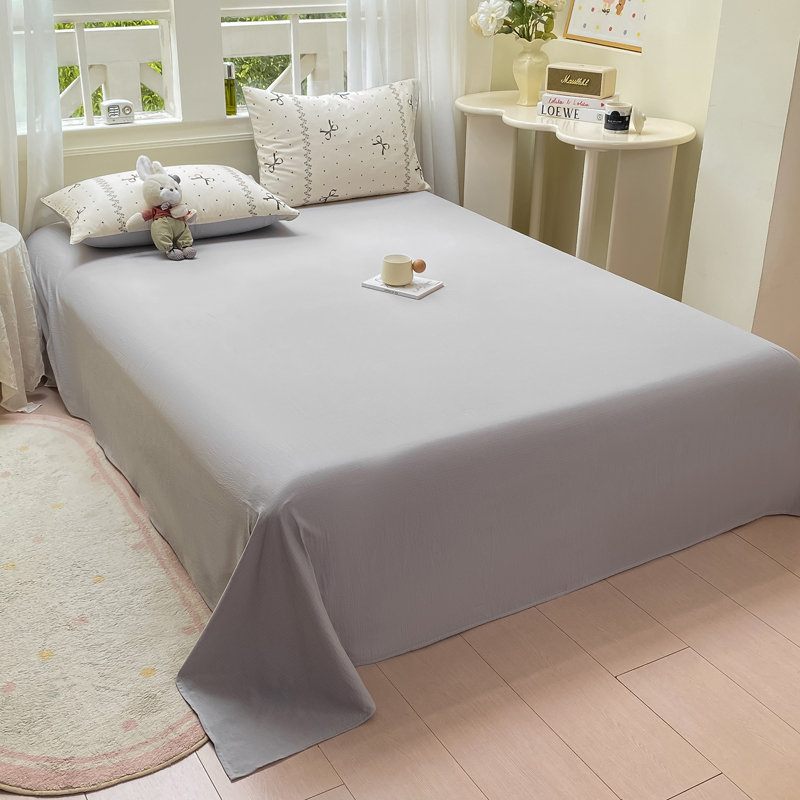 (总)朵朵家纺 2025新款云感提花双层纱纯色单床单被单(可定做尺寸),卡其,果绿,奶黄,浅灰,雾蓝,香芋紫,樱花粉