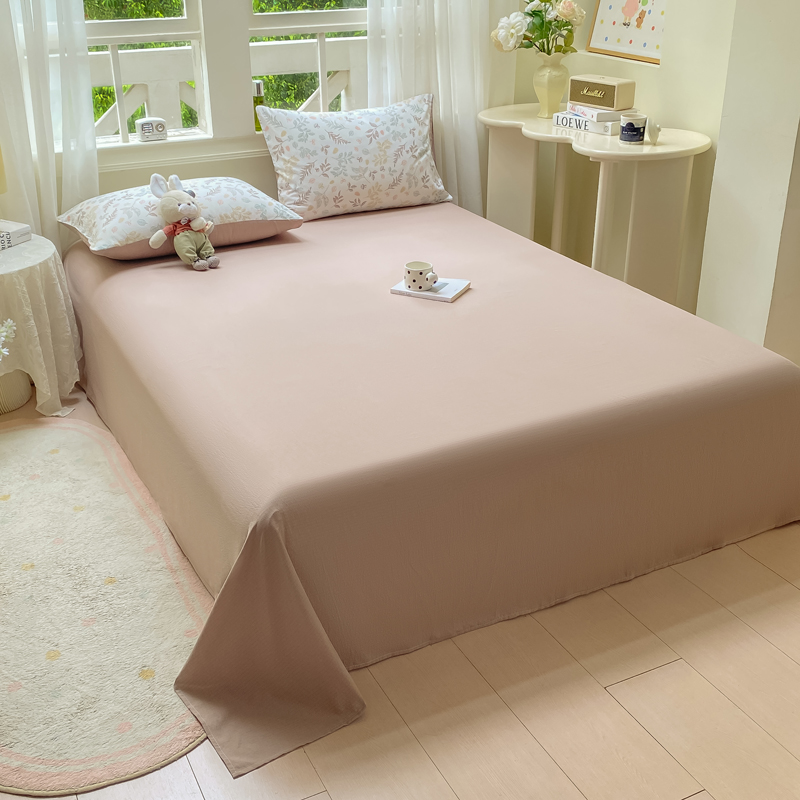 (总)朵朵家纺 2025新款云感提花双层纱纯色单床单被单(可定做尺寸),卡其,果绿,奶黄,浅灰,雾蓝,香芋紫,樱花粉