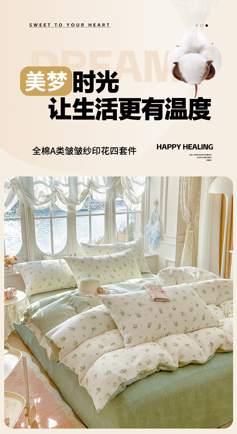 商品名称:木楌家居 2025春夏新品全棉A类皱皱纱印花四件套 芮汐
