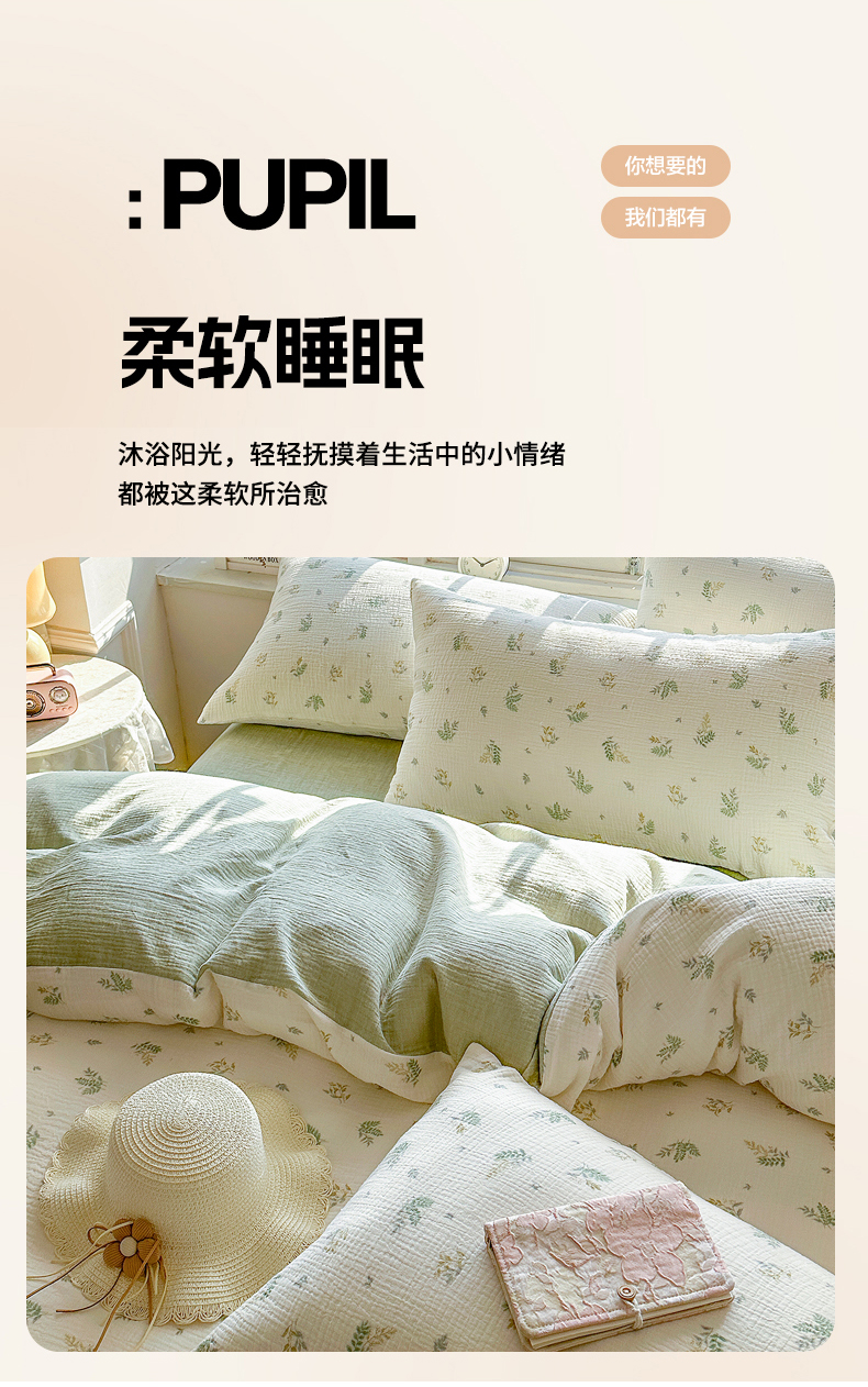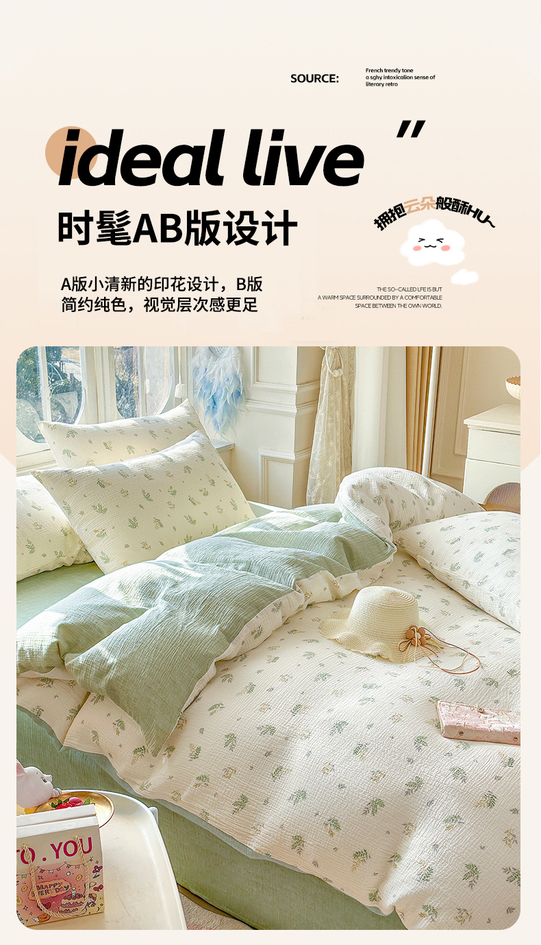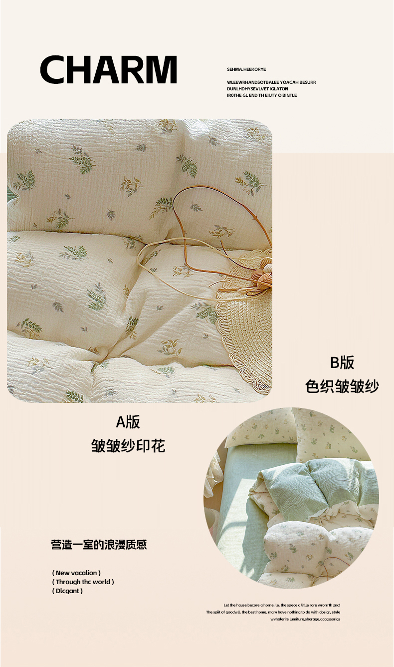 木楌家居 2025春夏新品全棉A类皱皱纱印花四件套 芮汐