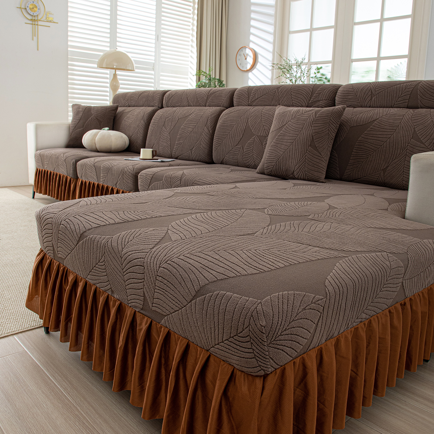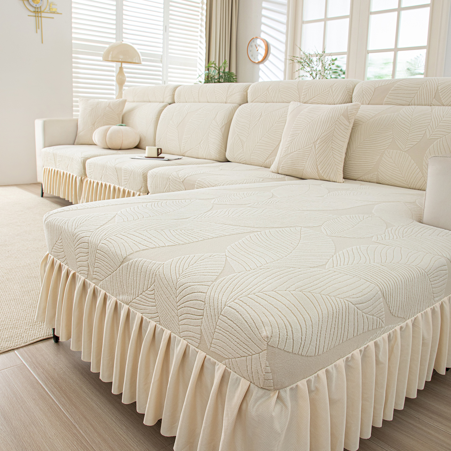 当前位置: 91家纺网 > 商品网购 > 居家布艺 > 坐垫/椅垫/沙发垫 > 沙发 > 沐沐家纺 2026新款霏叶裙边沙发笠 墨玉绿