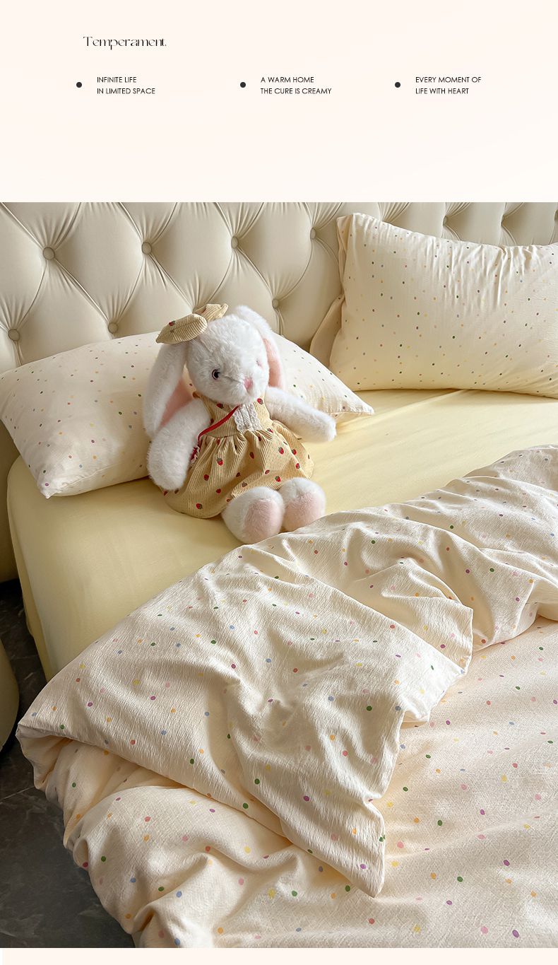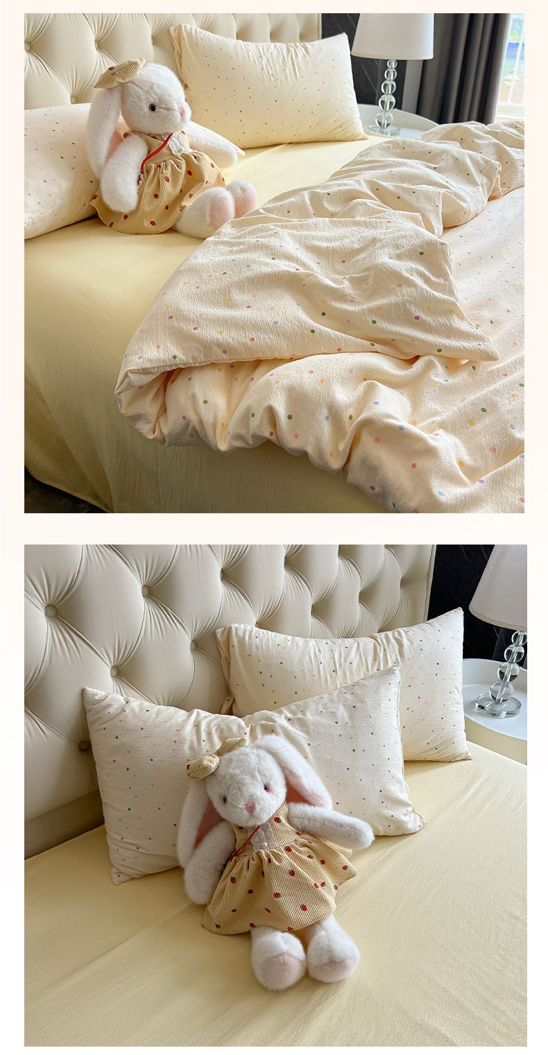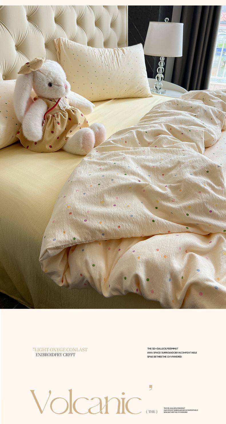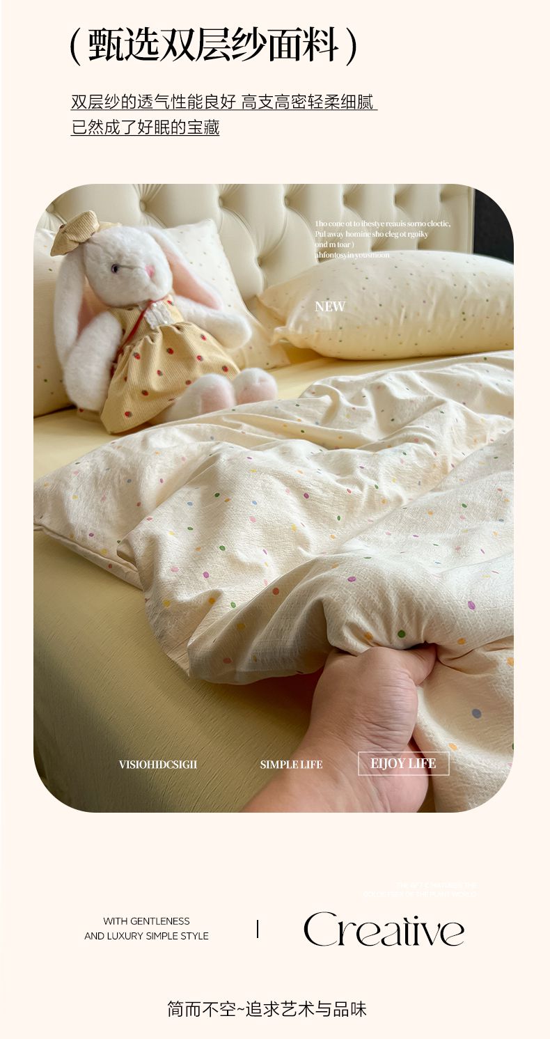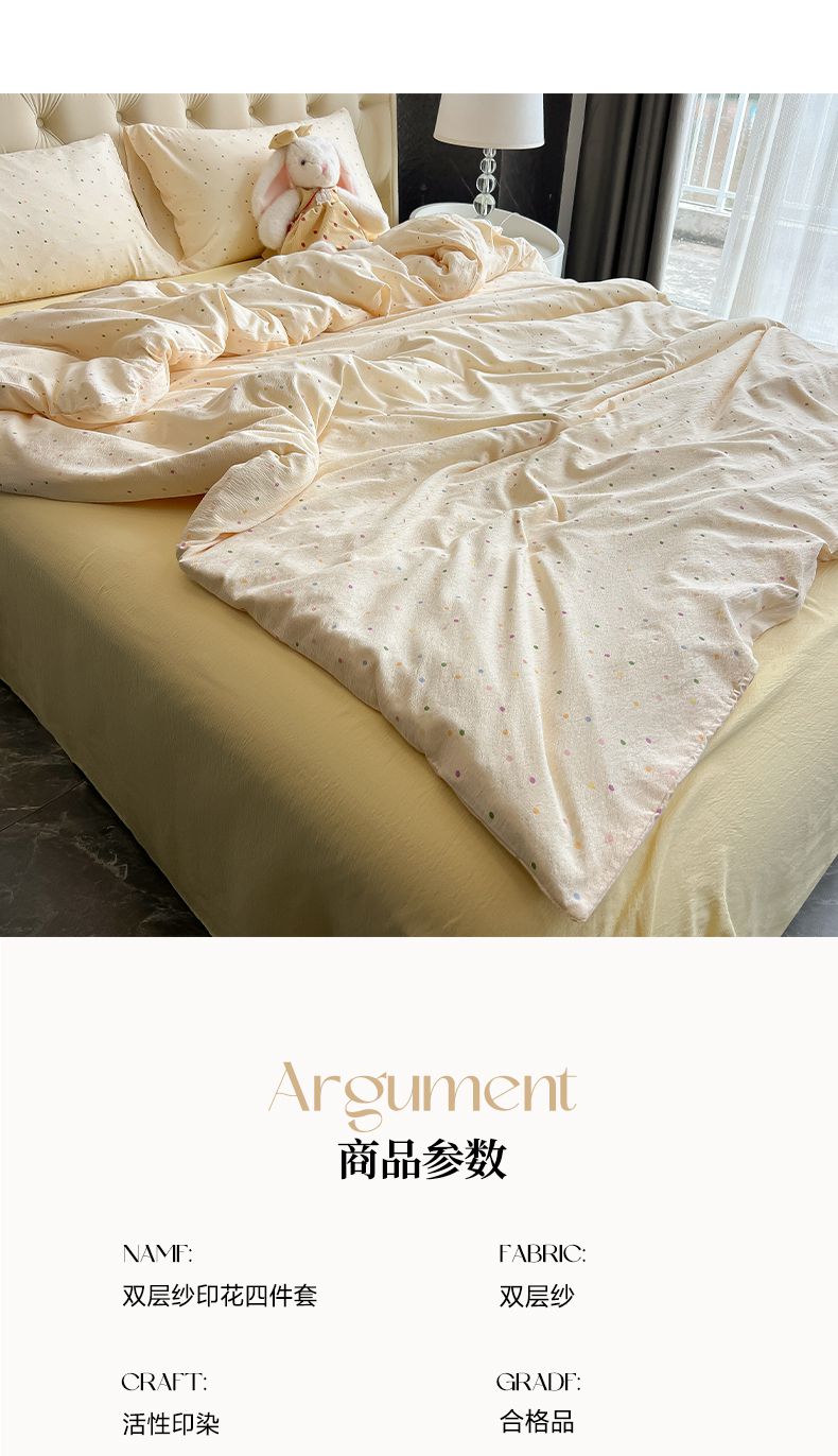 当前位置: 91家纺网 > 商品网购 > 床品套件 > 四件套 > 双层纱四件套 > 韩巢家纺 2025新款双层纱床上用品四件套热销款超柔学生宿舍床单被套三件套 波点世界