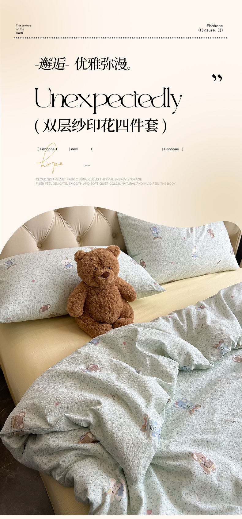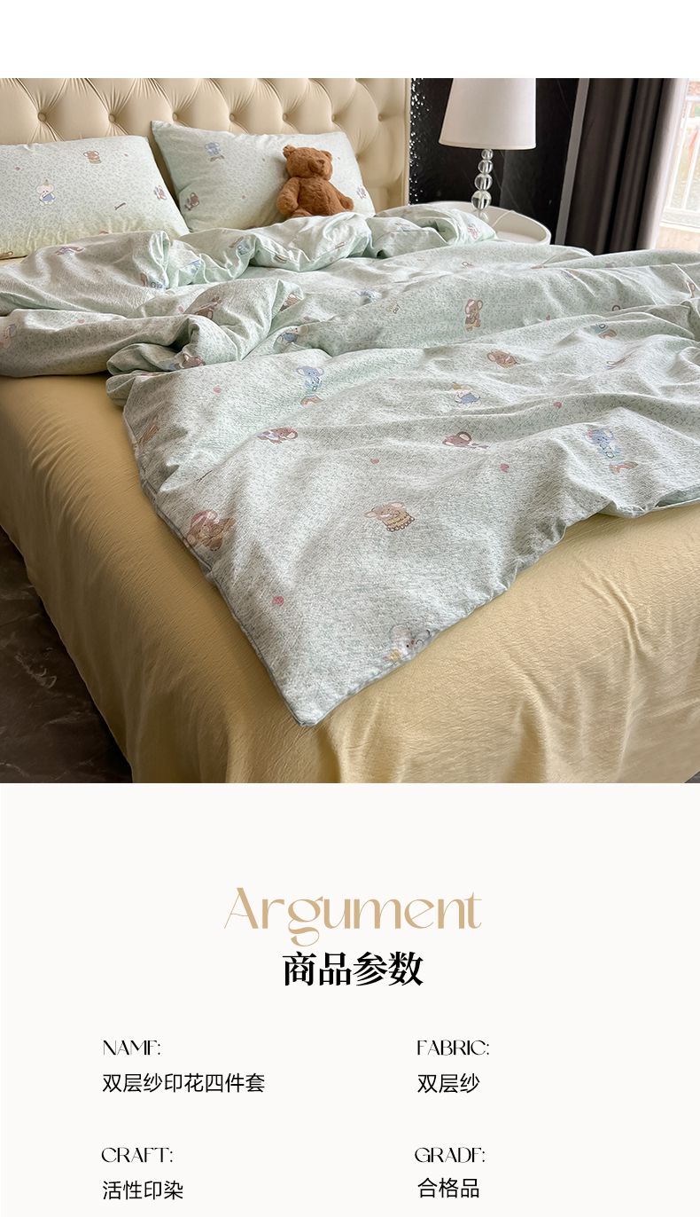 当前位置: 91家纺网 > 商品网购 > 床品套件 > 四件套 > 双层纱四件套 > 韩巢家纺 2025新款双层纱床上用品四件套热销款超柔学生宿舍床单被套三件套 少女象
