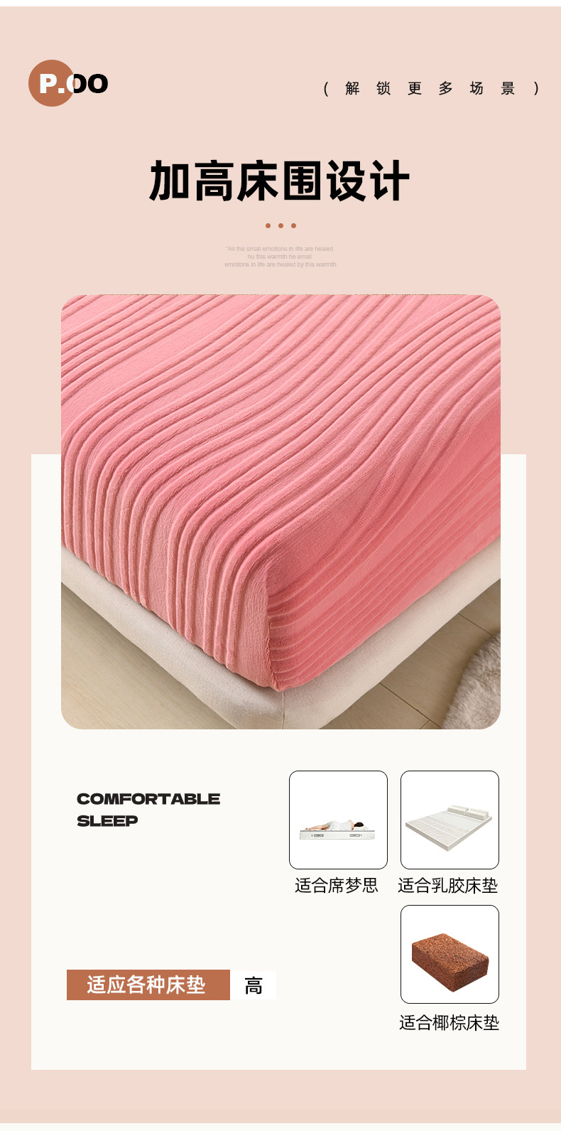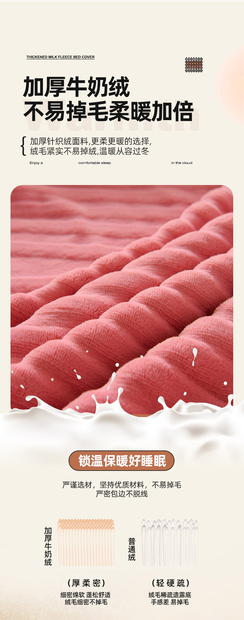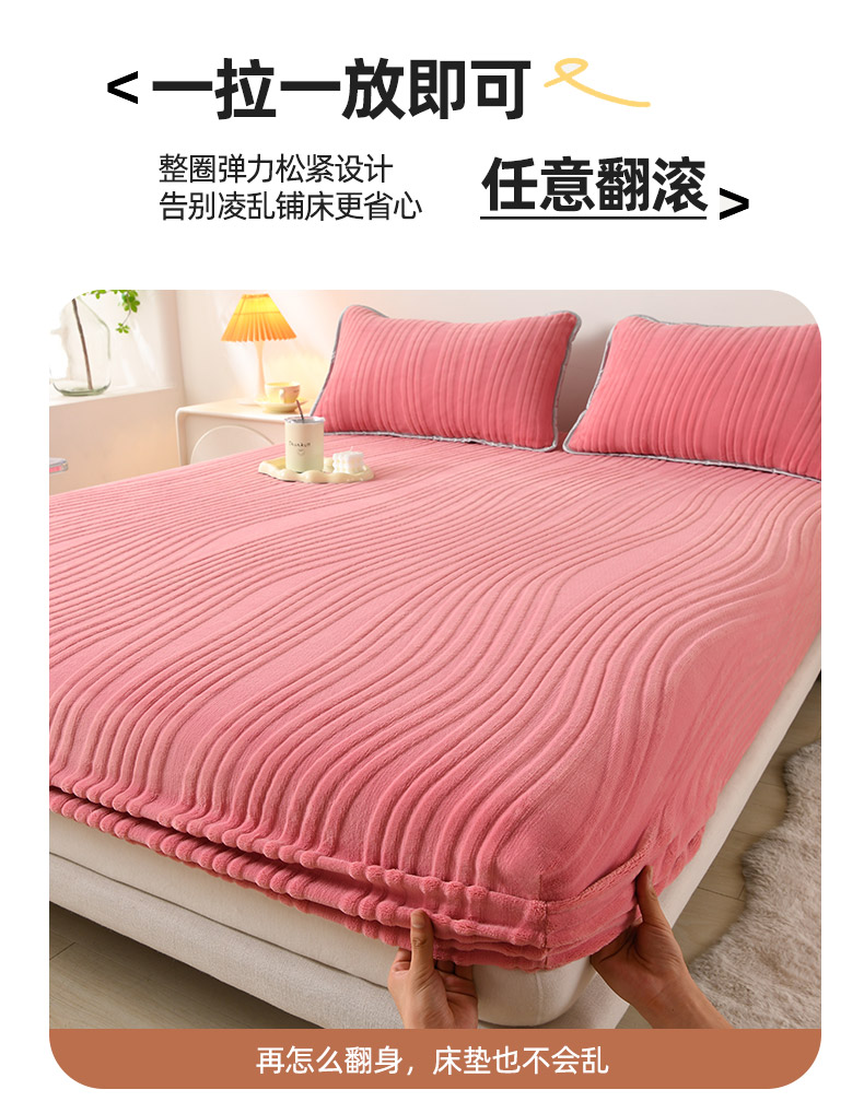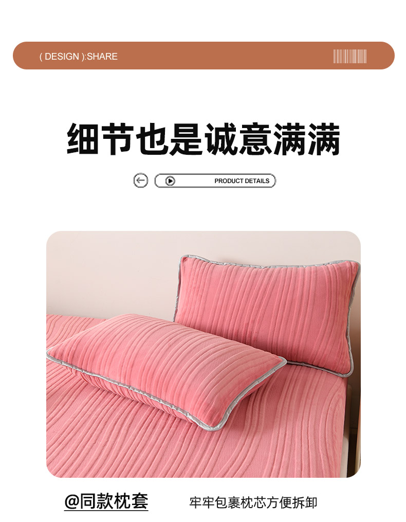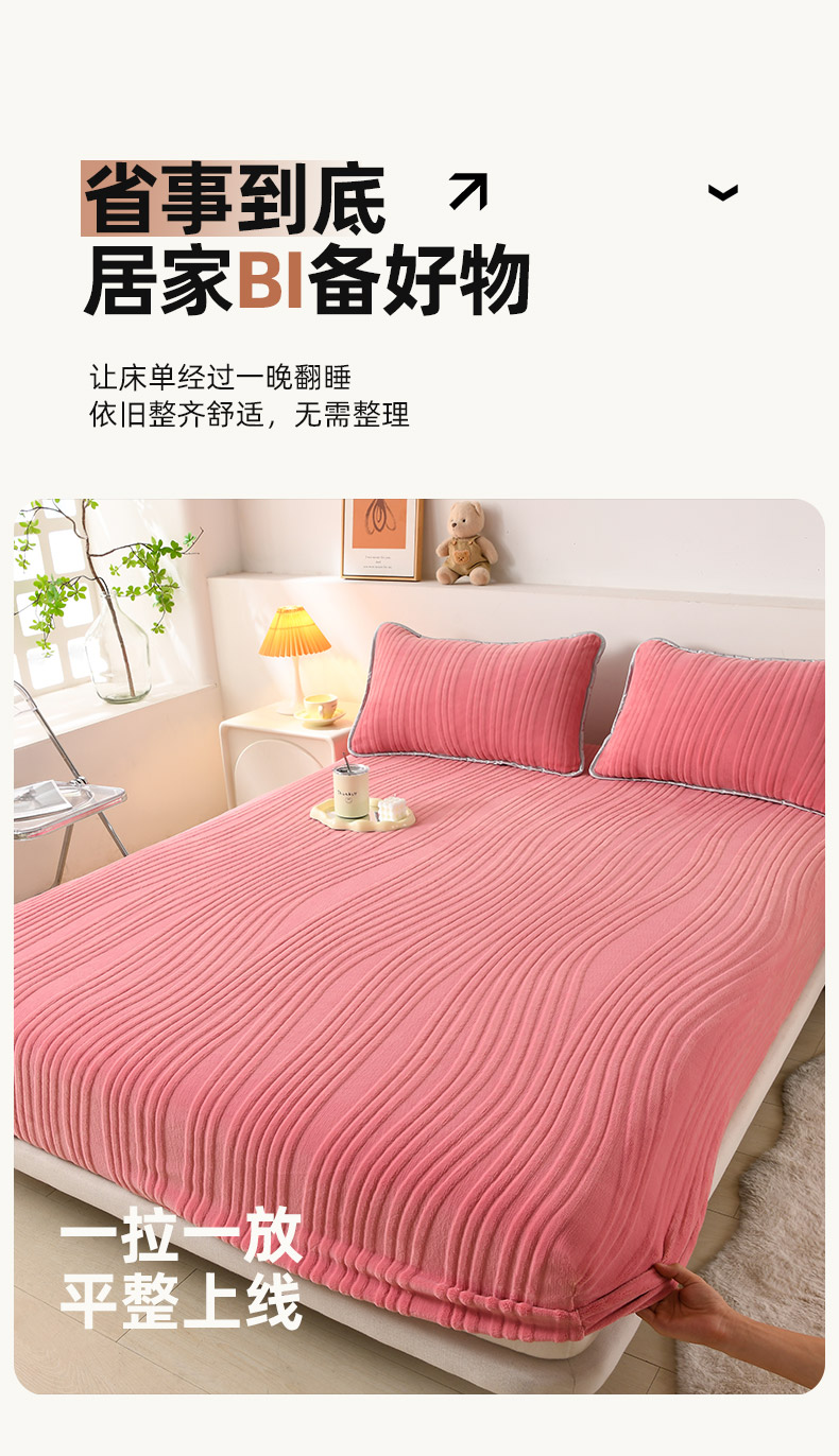 • 91家纺网 家纺一手货源 找家纺 推推家纺 2025新款雕花加厚牛奶绒床笠 条纹时代-豆沙
