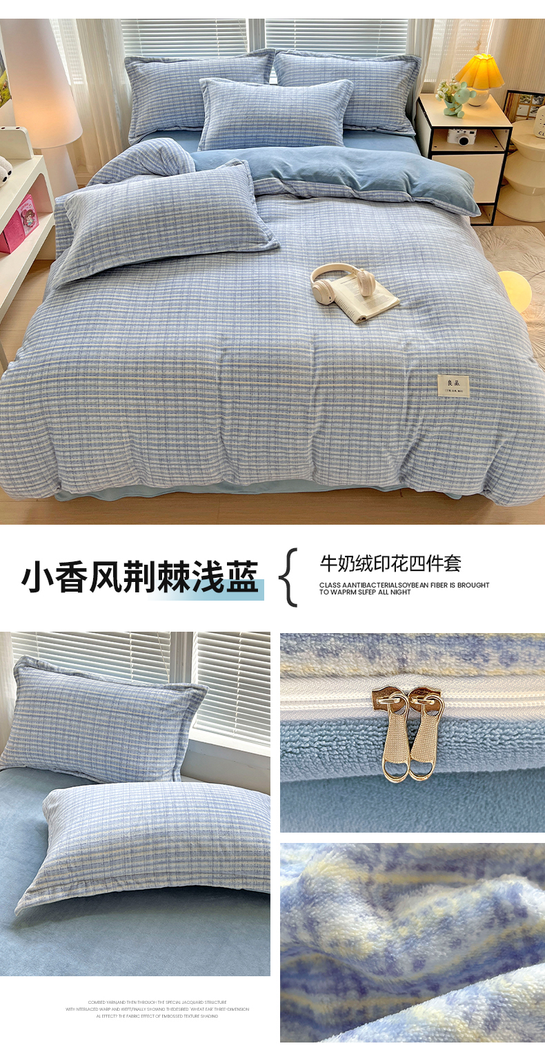 当前位置: 91家纺网 > 商品网购 > 床品套件 > 四件套 > 牛奶绒四件套 > 简一 2025新款牛奶绒无印风ins风方格系列-四件套 小香风荆棘-浅蓝