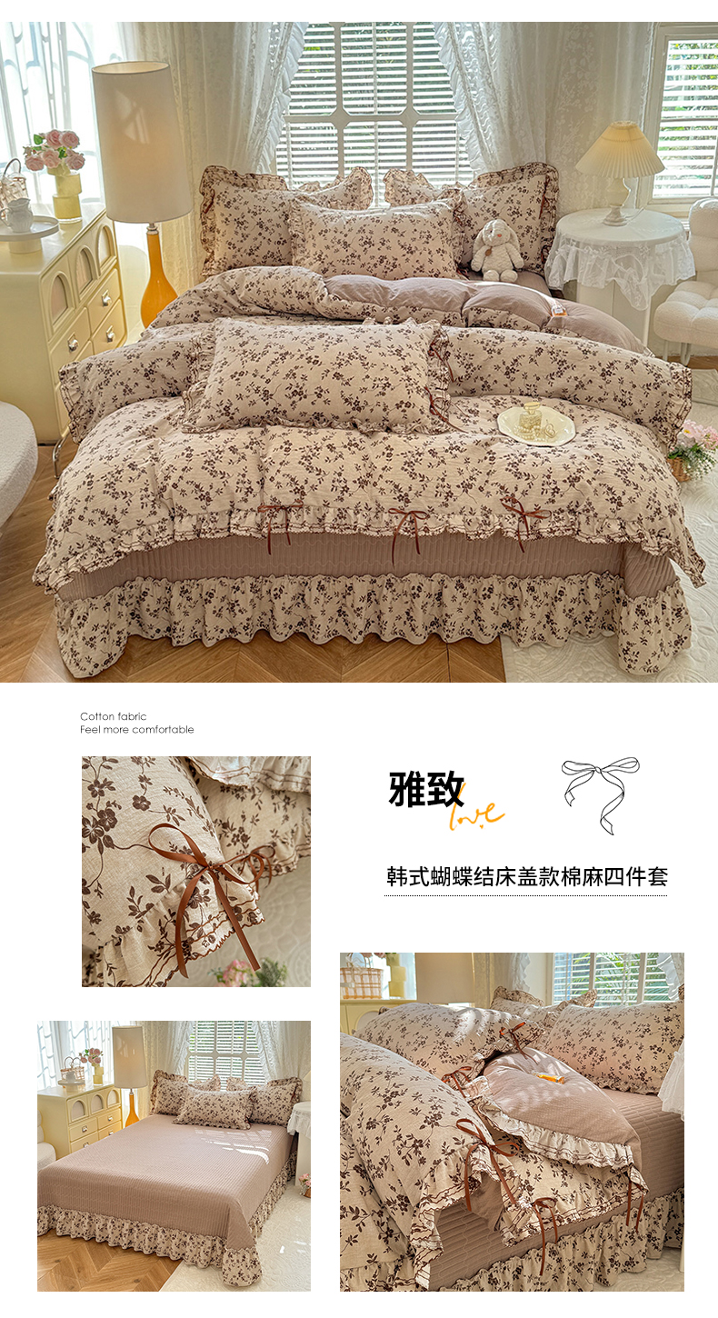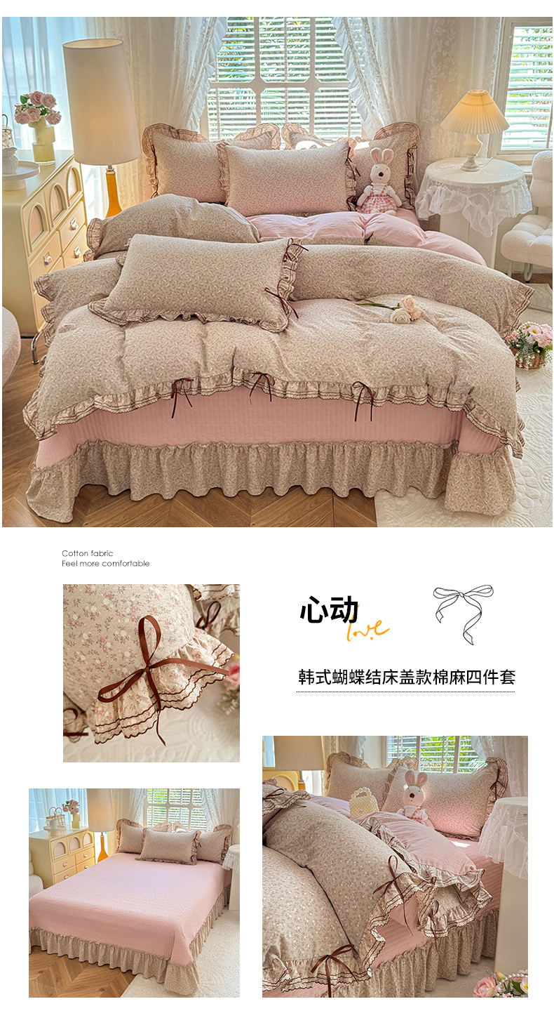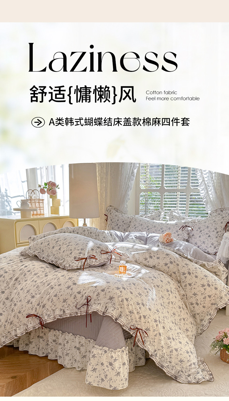 商品名称:韩约家纺 2025新款韩约1韩式蝴蝶结床盖款棉麻四件套 芳华