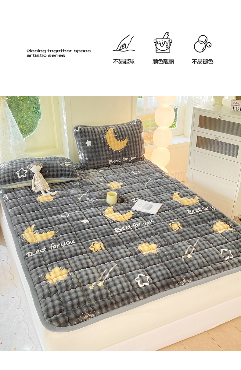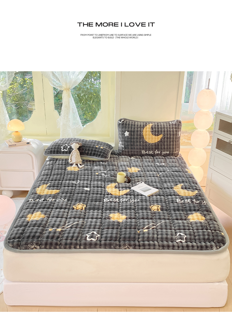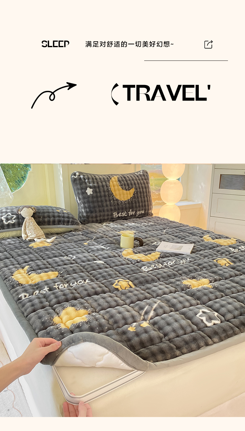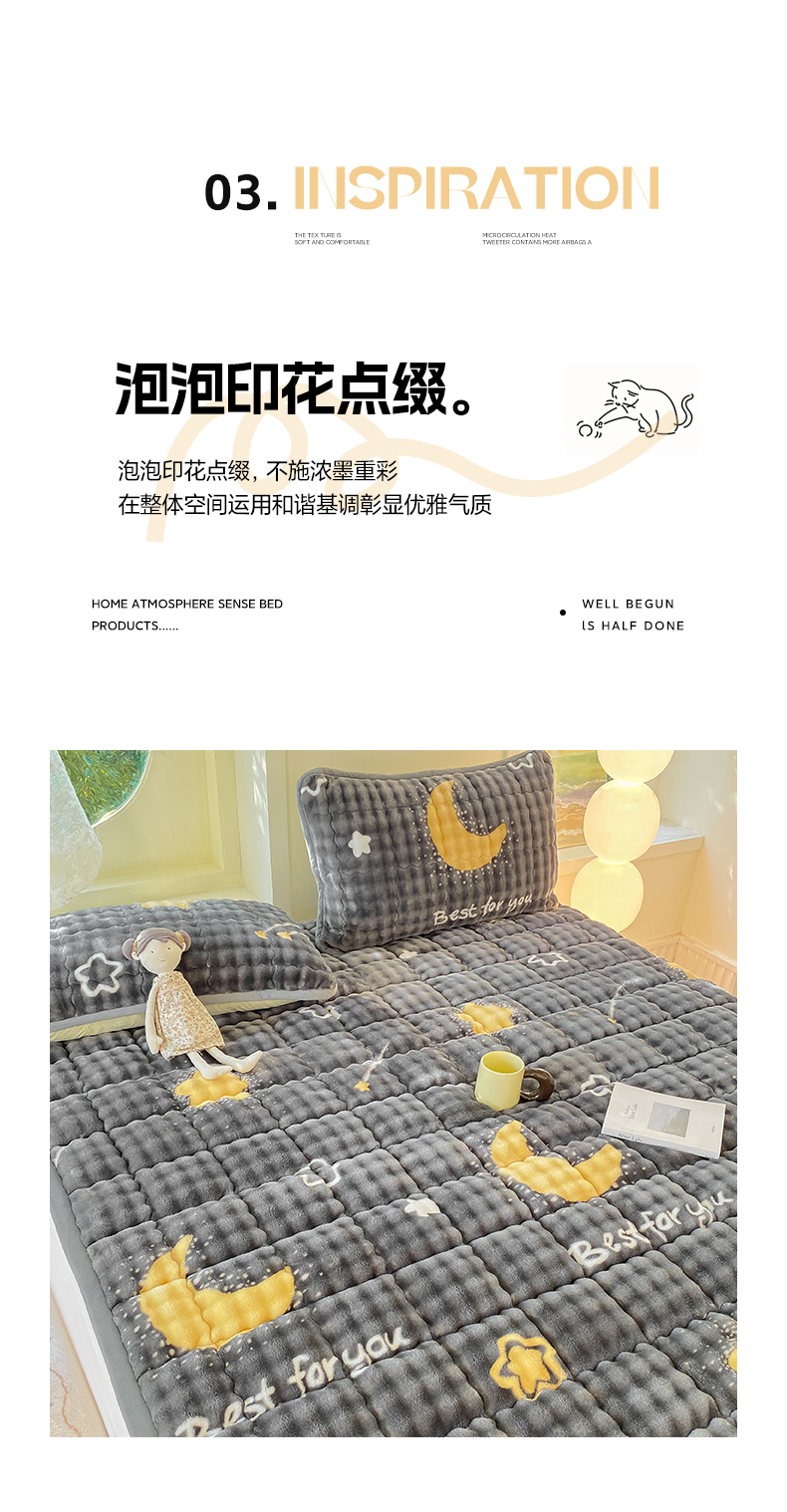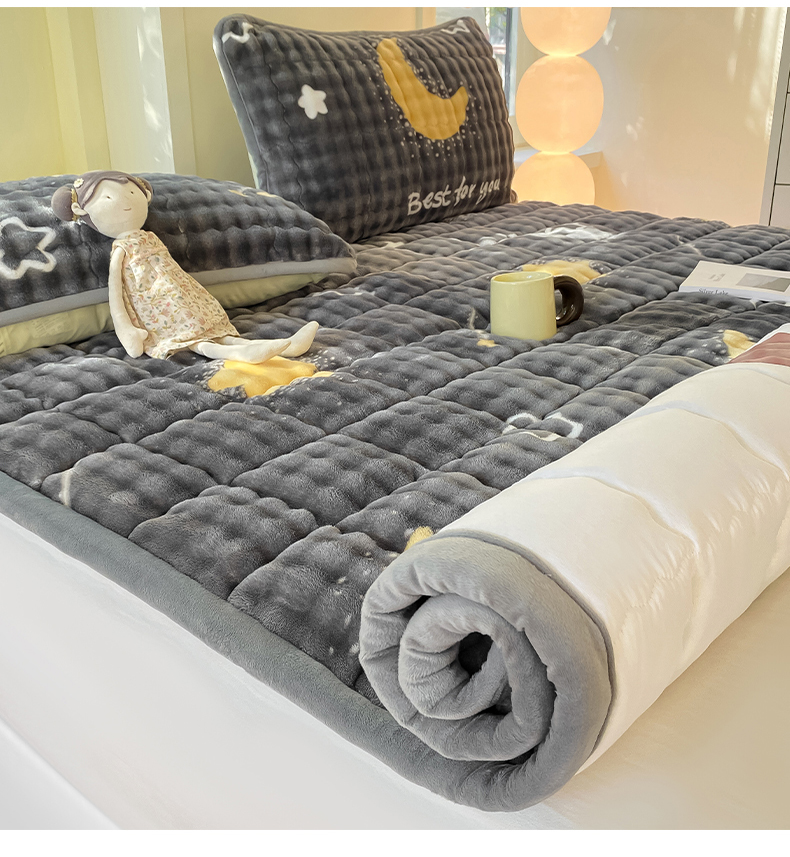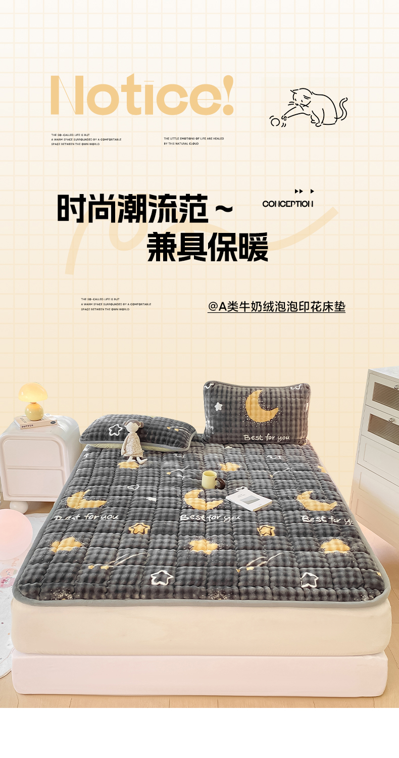 • 91家纺网 家纺一手货源 找家纺 眠势力 2025新款牛奶绒泡泡床垫加绒仿兔毛绒床褥子秋冬保暖珊瑚绒夹棉床护垫 月亮湾