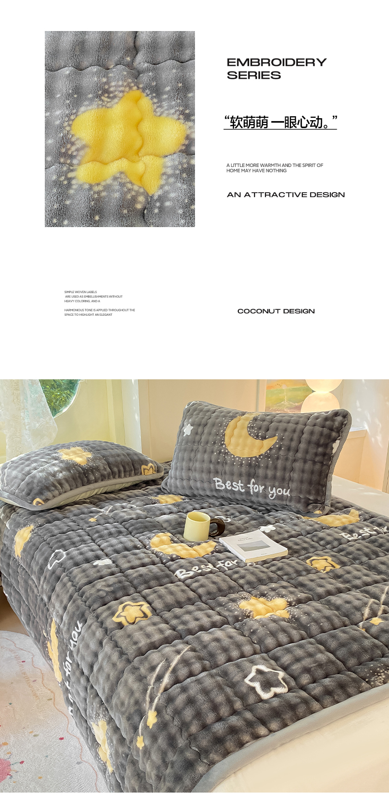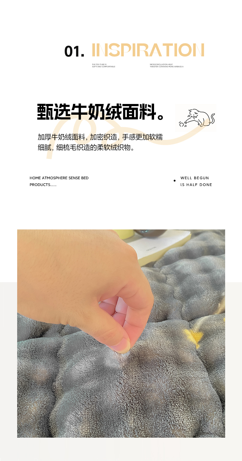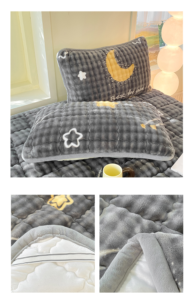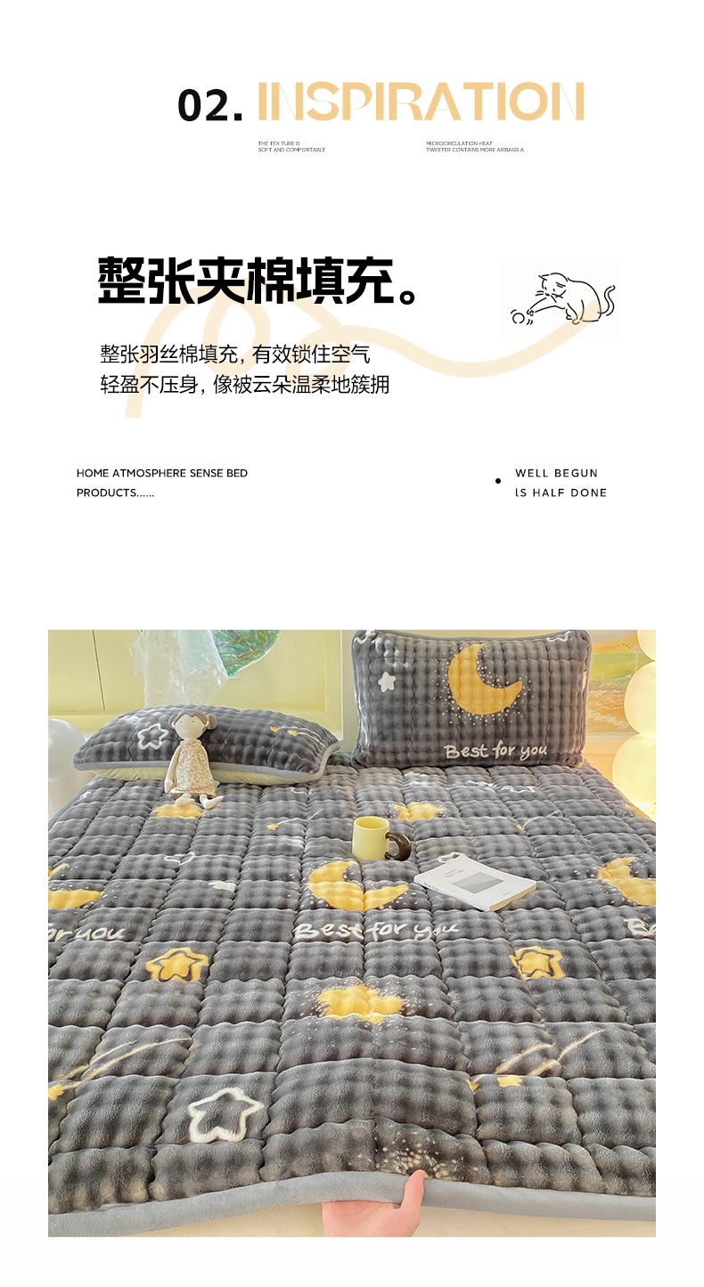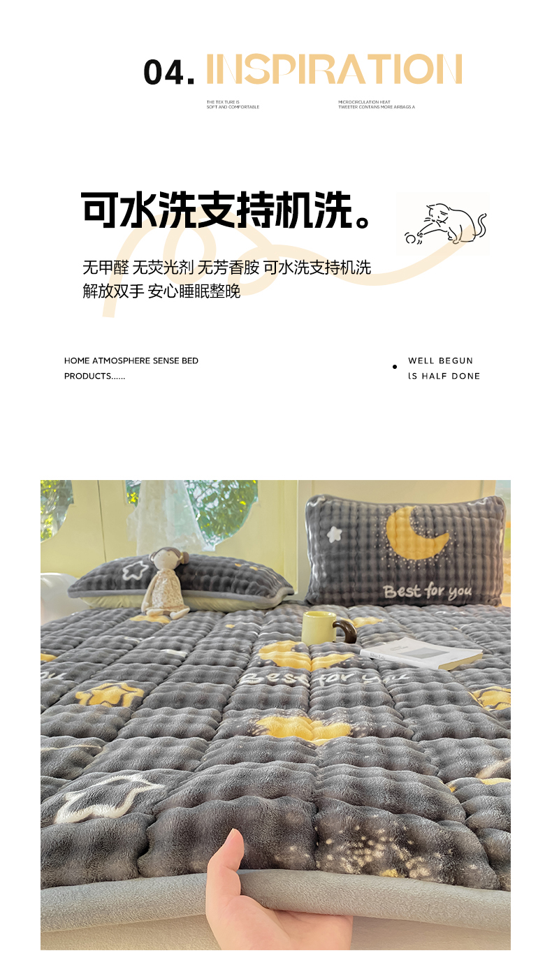 • 91家纺网 家纺一手货源 找家纺 眠势力 2025新款牛奶绒泡泡床垫加绒仿兔毛绒床褥子秋冬保暖珊瑚绒夹棉床护垫 月亮湾