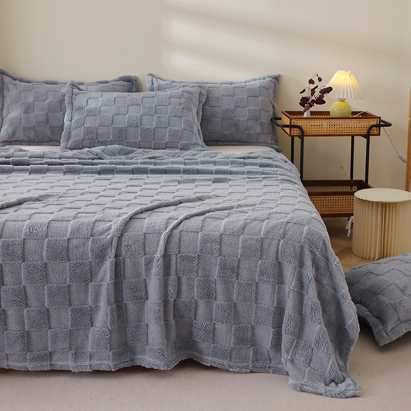 商品名称:栩裕纺织 2025新款意大利面包格毛毯-卷边款 面包格-莫奈紫