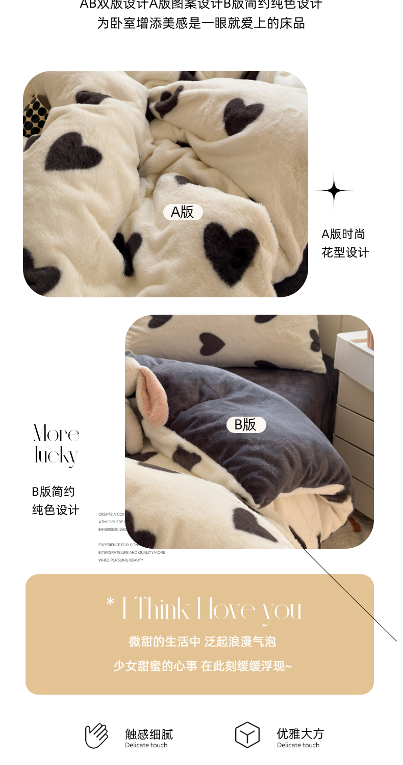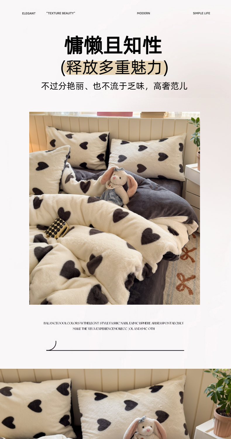 当前位置: 91家纺网 > 商品网购 > 床品套件 > 四件套 > 牛奶绒四件套 > 十里居 2025新款lns爱心系列兔毛牛奶绒四件套 爱心系列 爱心-灰