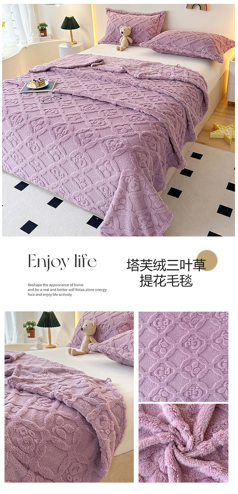 商品名称:栩裕纺织 2025新款塔芙绒三叶草提花毛毯-卷边款 莫奈紫