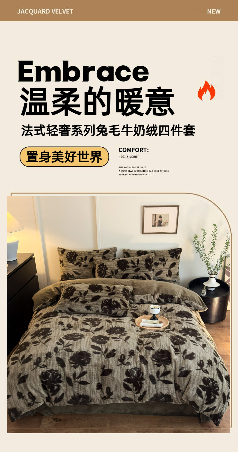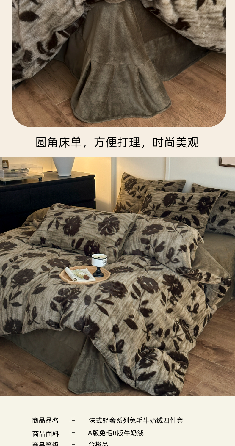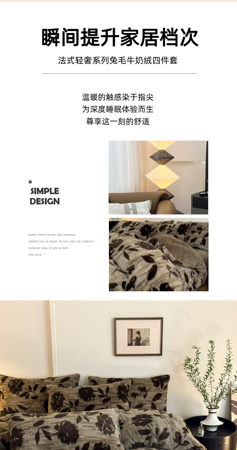 (总)十里居 2025新款兔毛印花法式轻奢系列牛奶绒四件套,豹纹蝴蝶,蝶舞咖,法式白,花海,花影灰,玫瑰