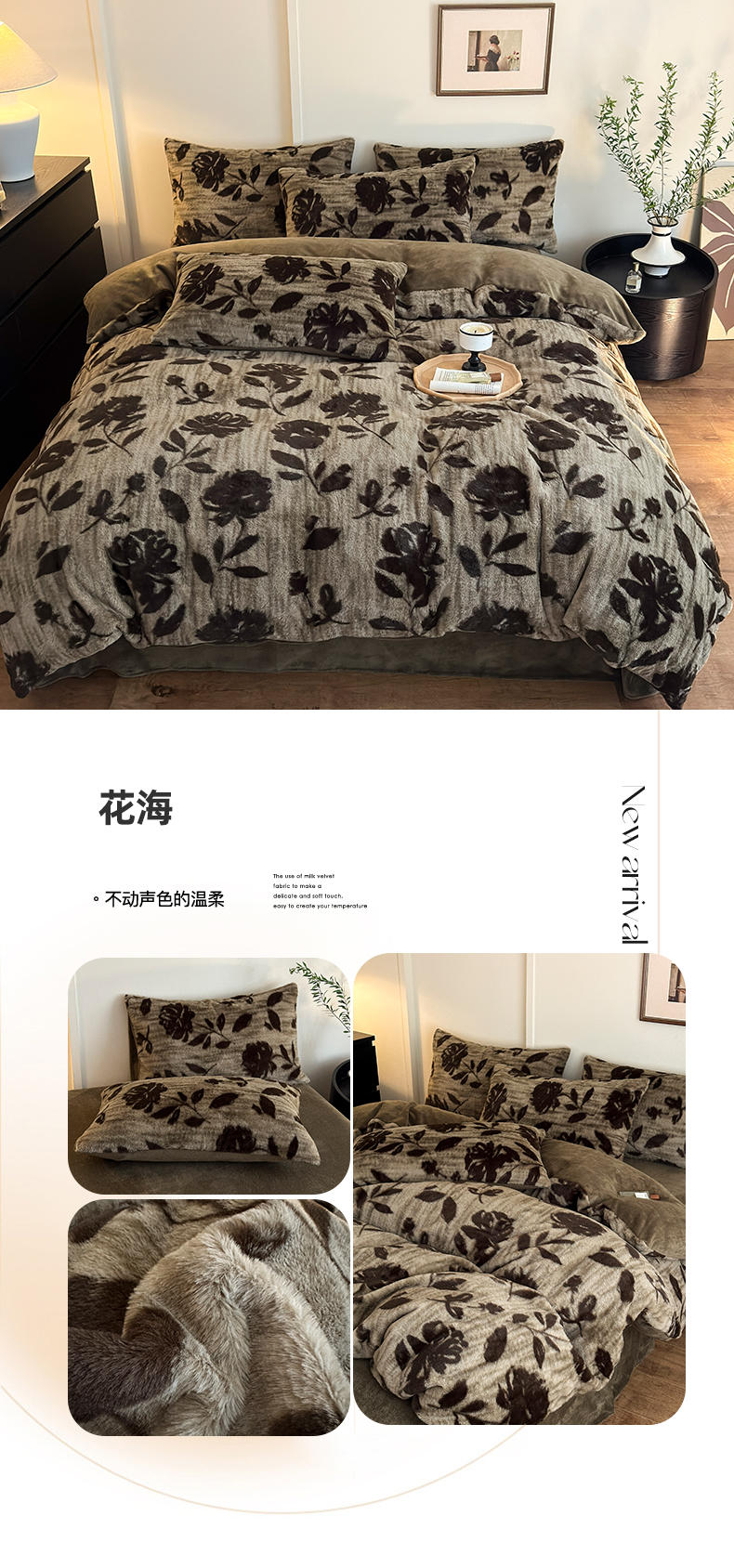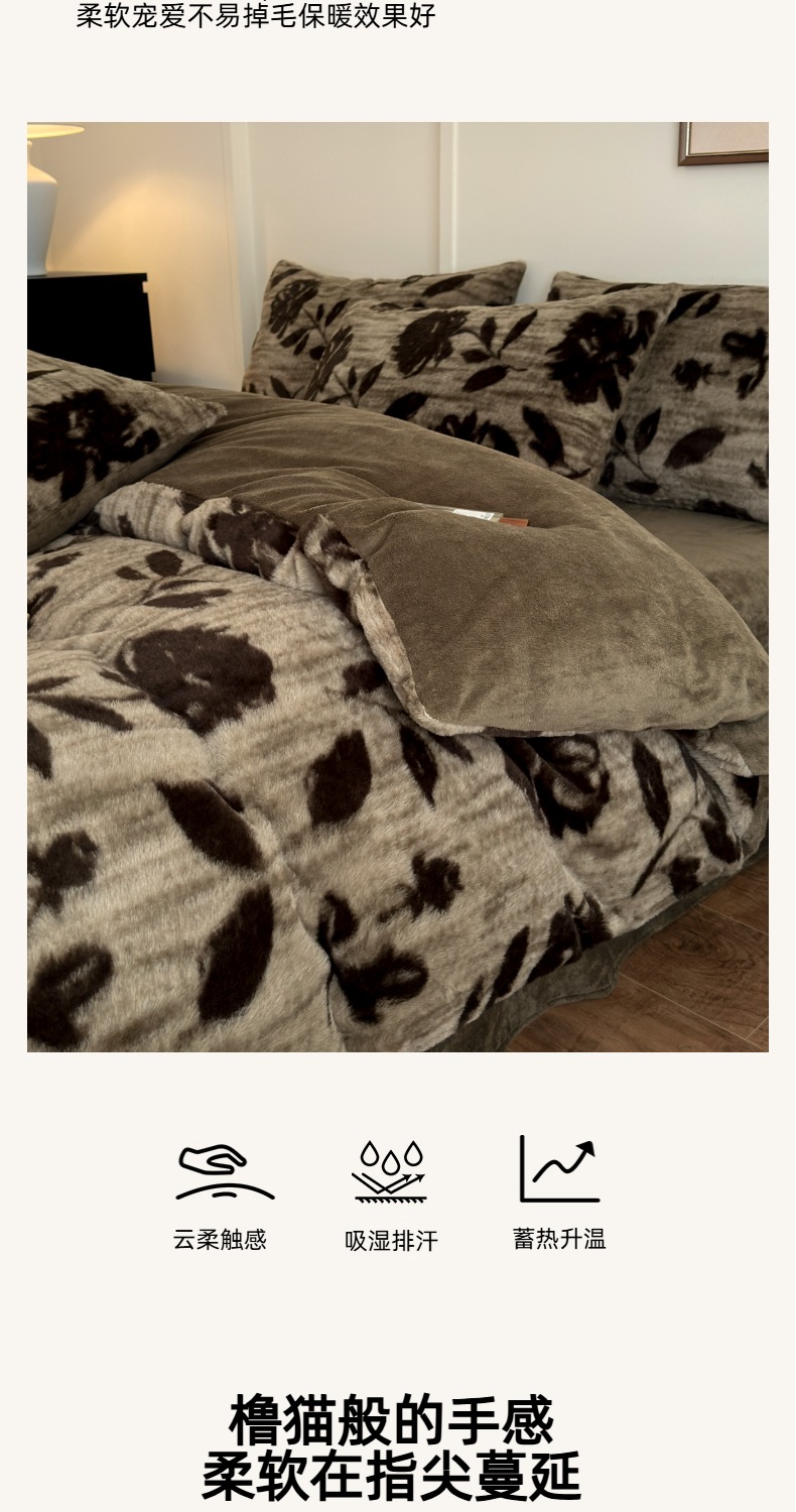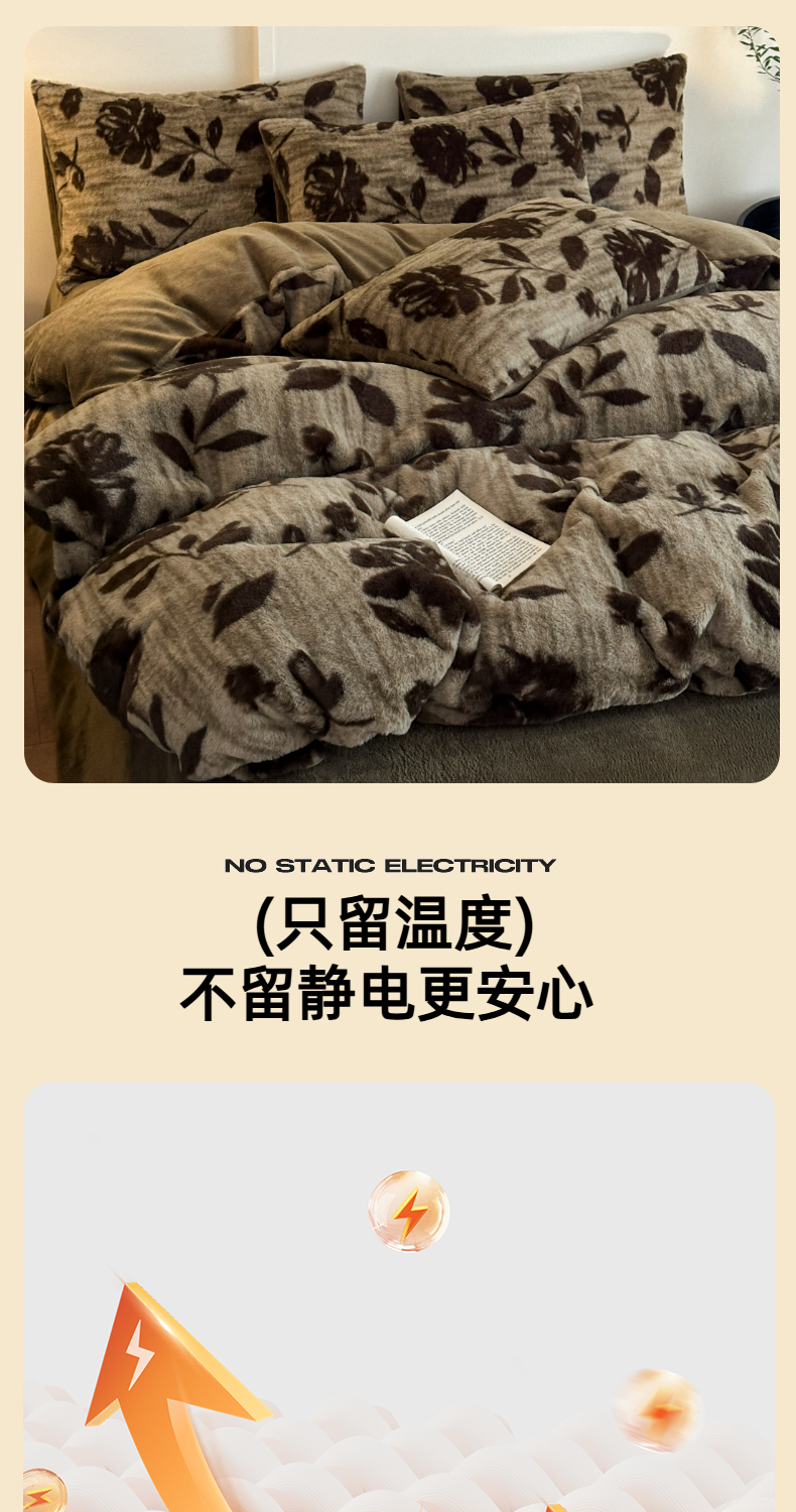 (总)十里居 2025新款兔毛印花法式轻奢系列牛奶绒四件套,豹纹蝴蝶,蝶舞咖,法式白,花海,花影灰,玫瑰