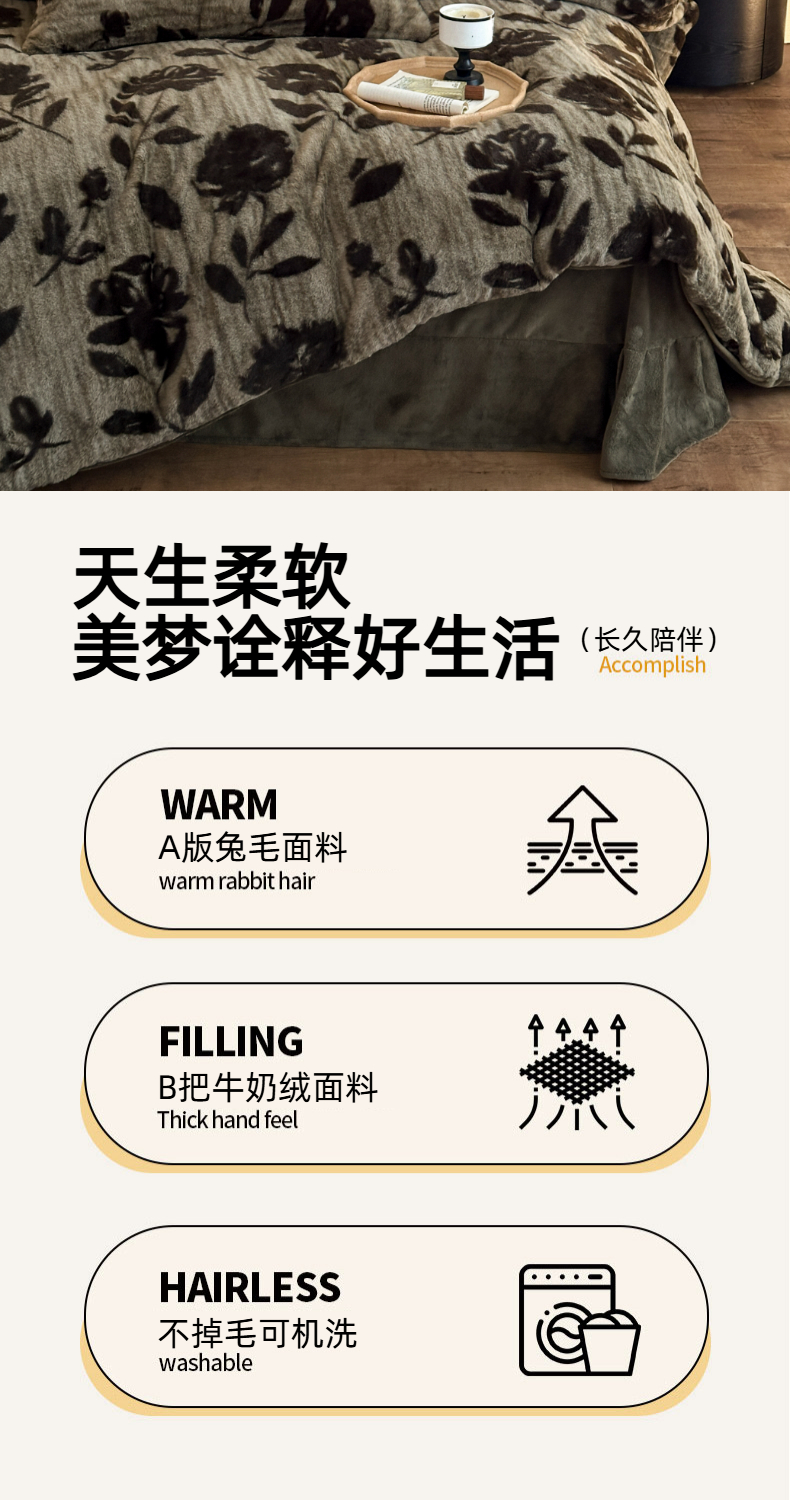 (总)十里居 2025新款法式复古兔毛球雕花牛奶绒四件套,玫瑰-灰,玫瑰-粉,玫瑰-绿,玫瑰-浅咖