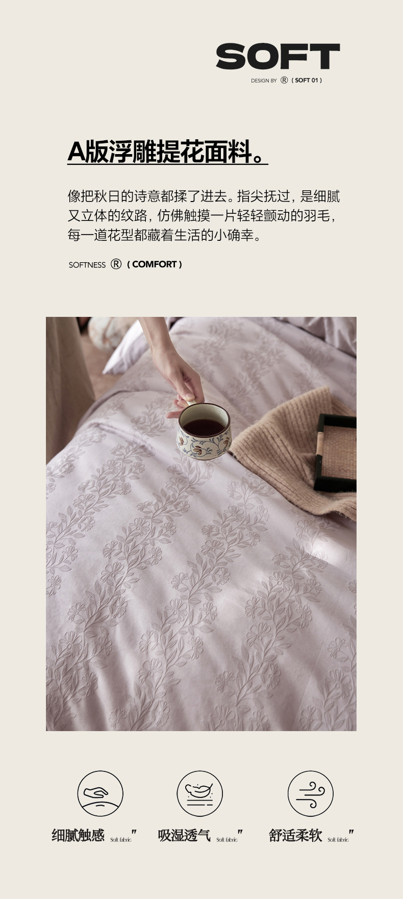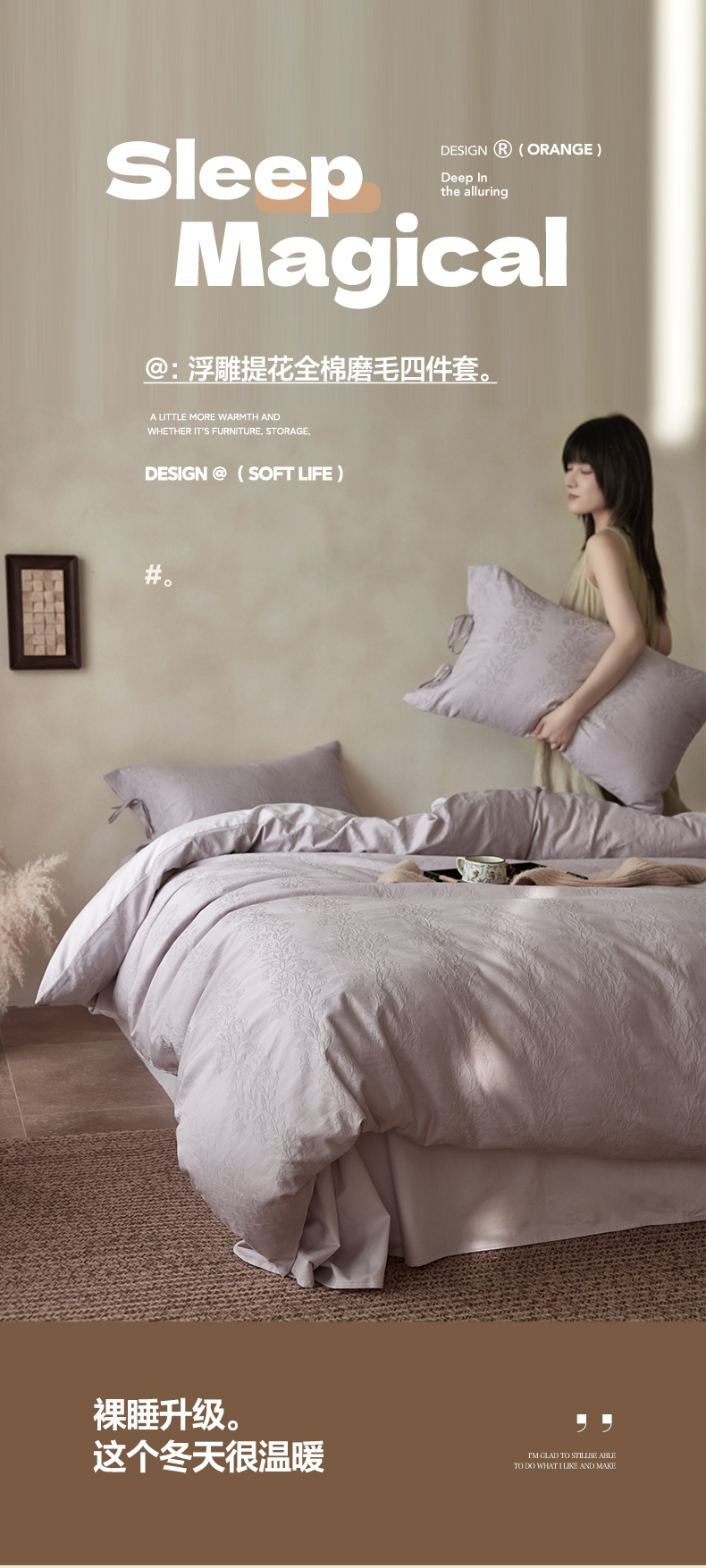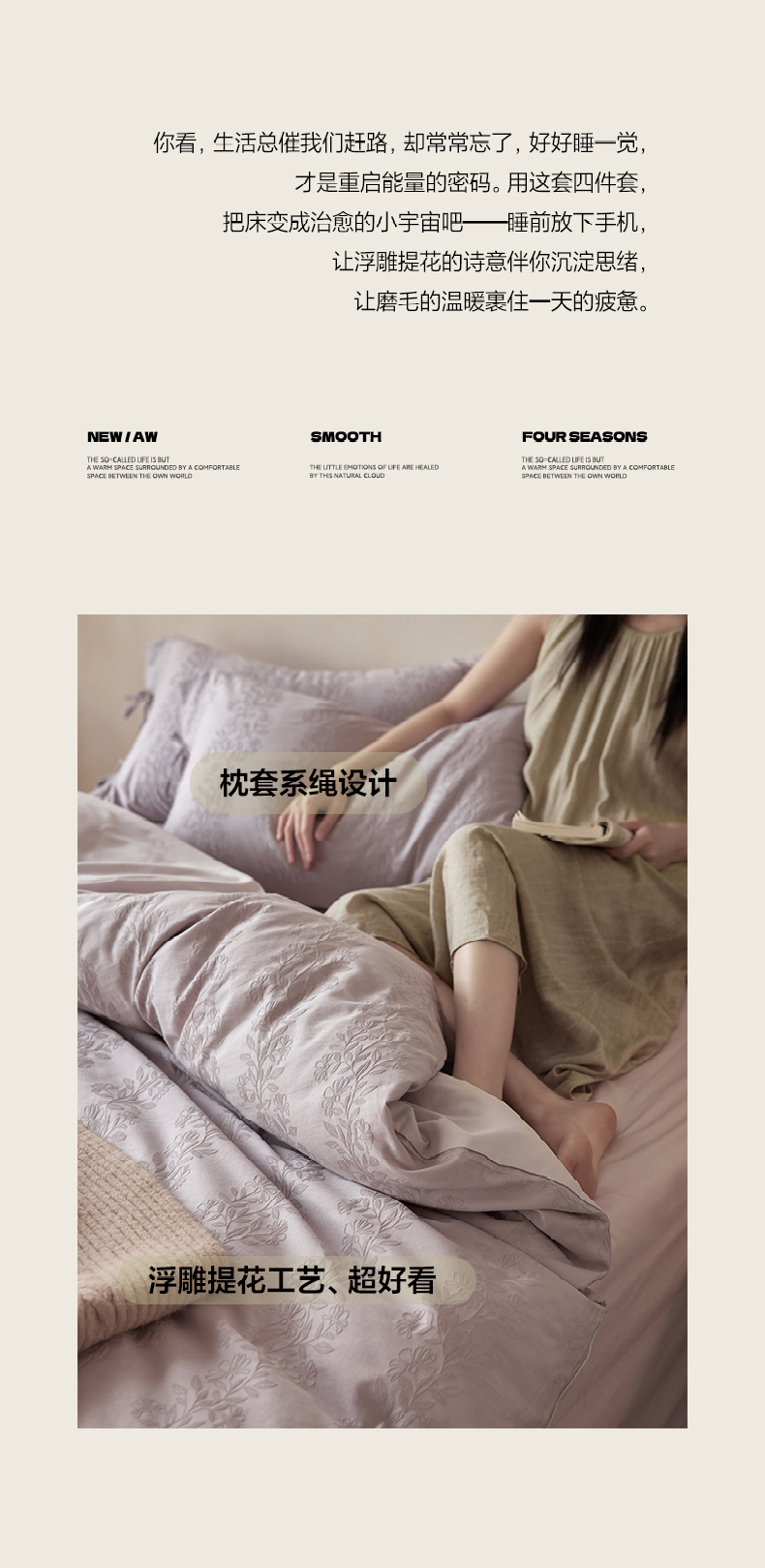 简纯主义 2025新款浮雕提花全棉磨毛四件套 漫漫紫