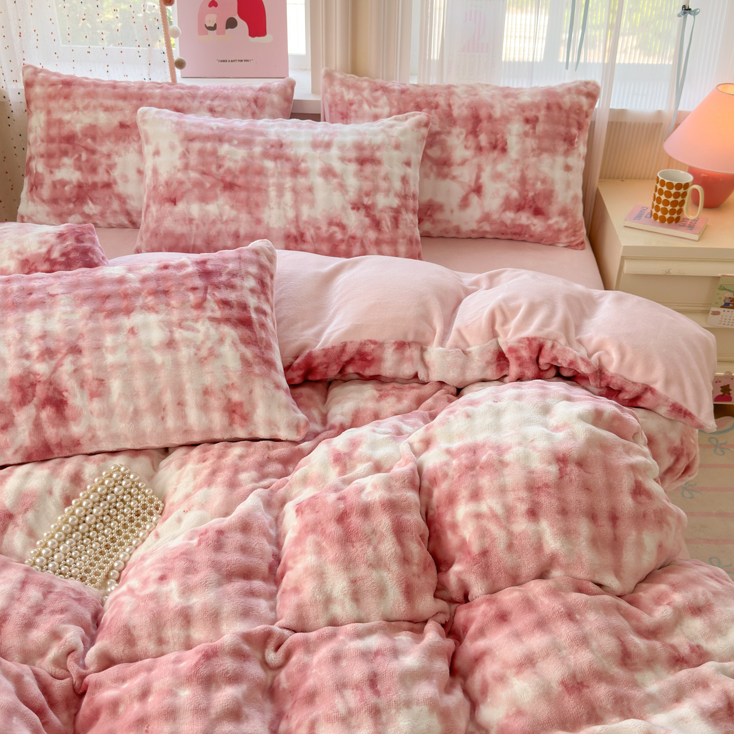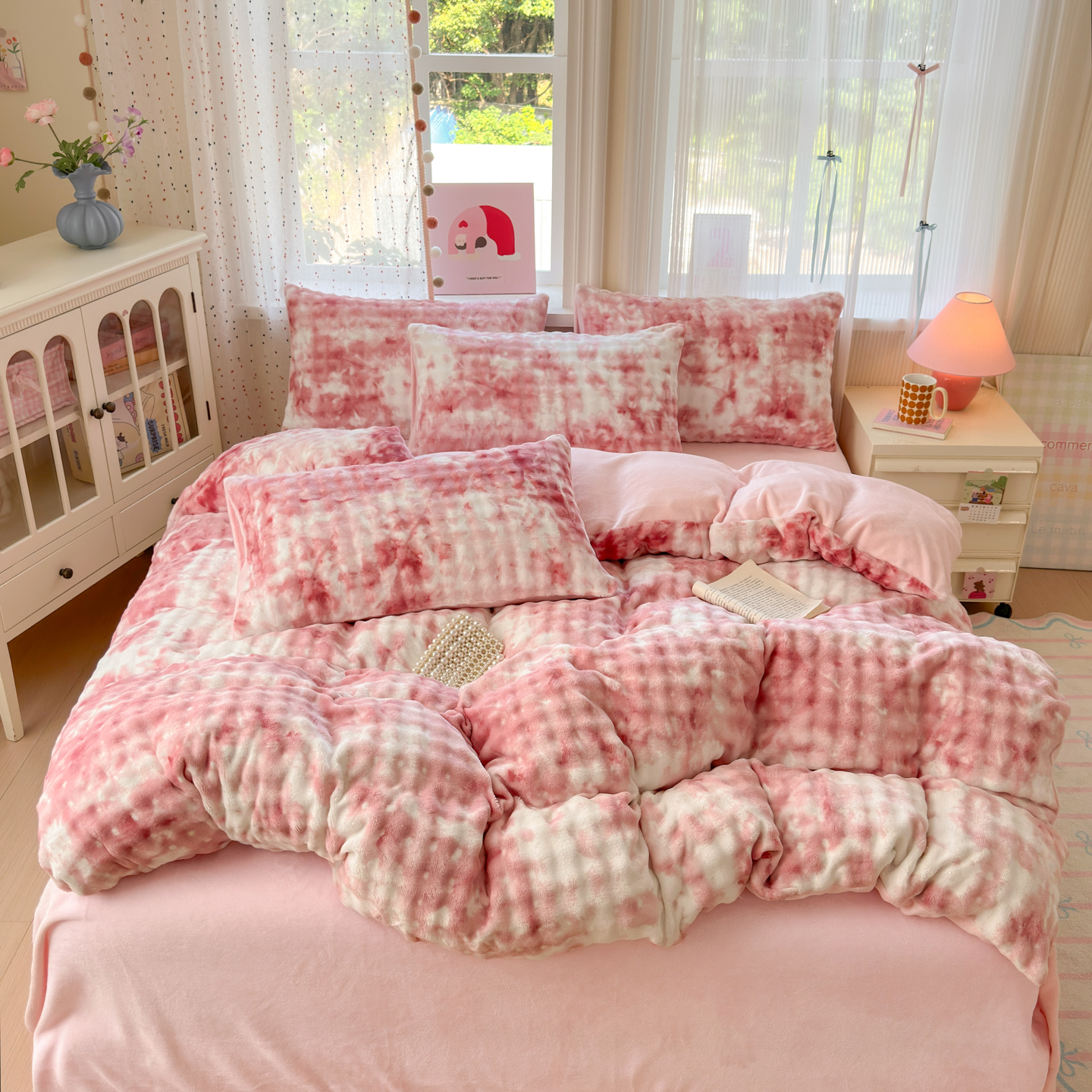 德比尔斯 2025新款泡泡牛奶绒四件套 炫彩泡泡粉色