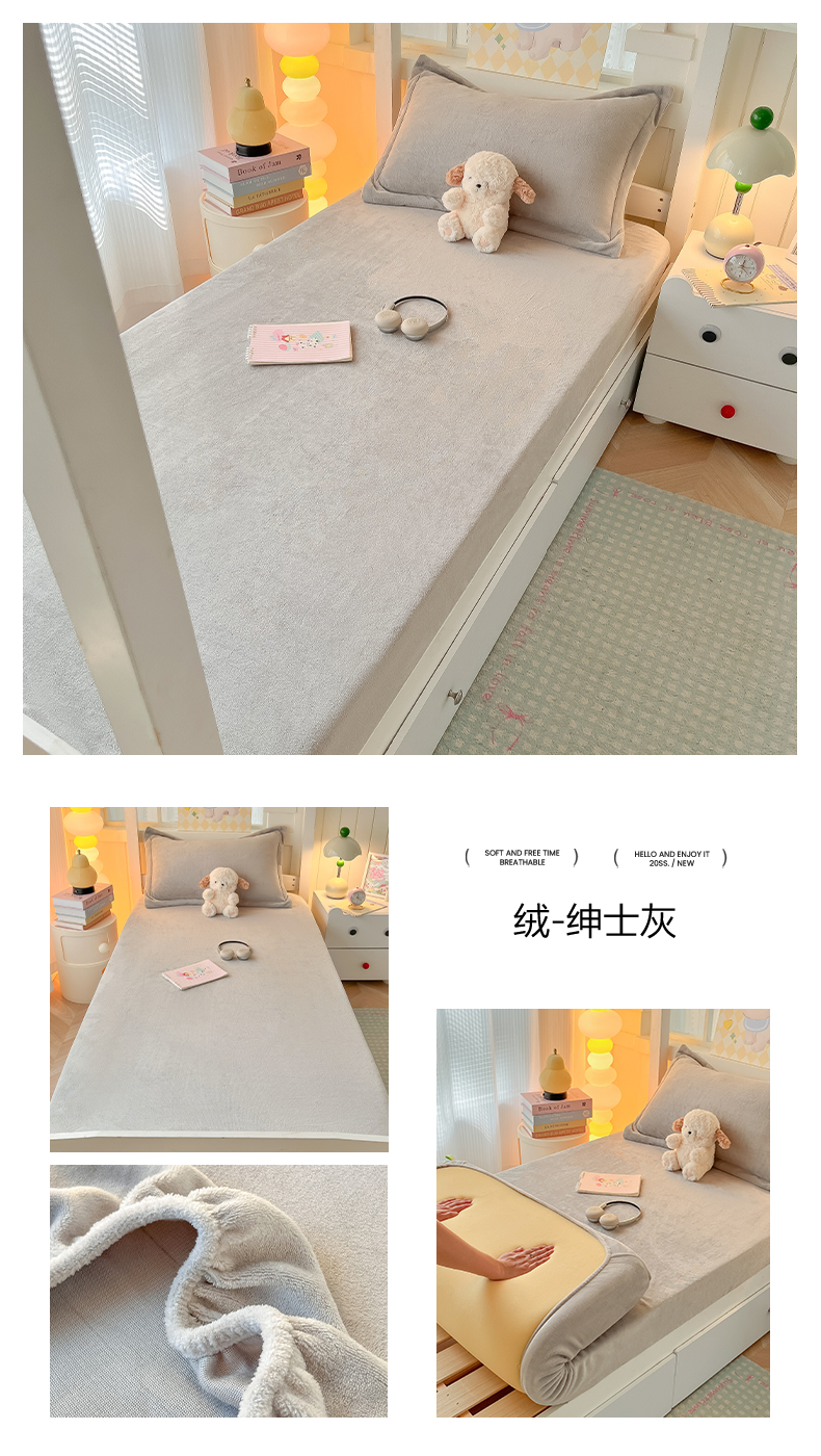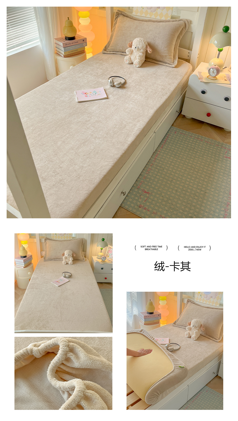 • 91家纺网 家纺一手货源 找家纺 多乐家纺 2025新款高克重牛奶绒学生床床笠 绒-奶白