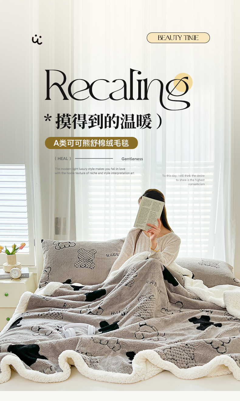 欧邦 2025新款A类舒棉绒毛毯盖毯毯子-可可熊 可可熊-灰色