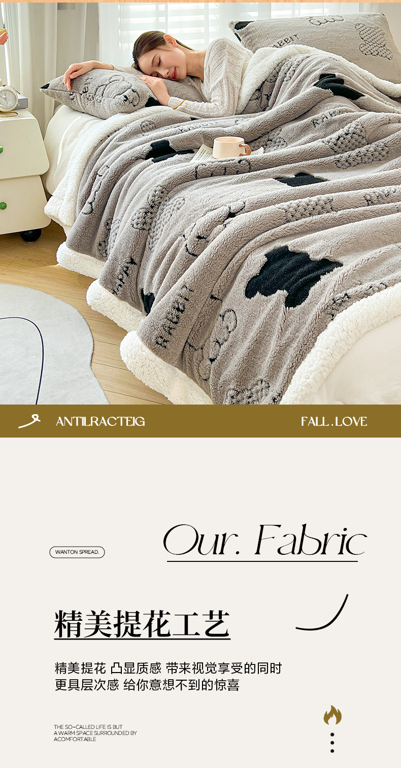 (总)欧邦 2025新款提花暖阳绒羊羔绒毛毯多功能盖毯-梦境系列,梦境-粉玉,梦境-幻白,梦境-米驼,梦境-桑绿,梦境-雾灰