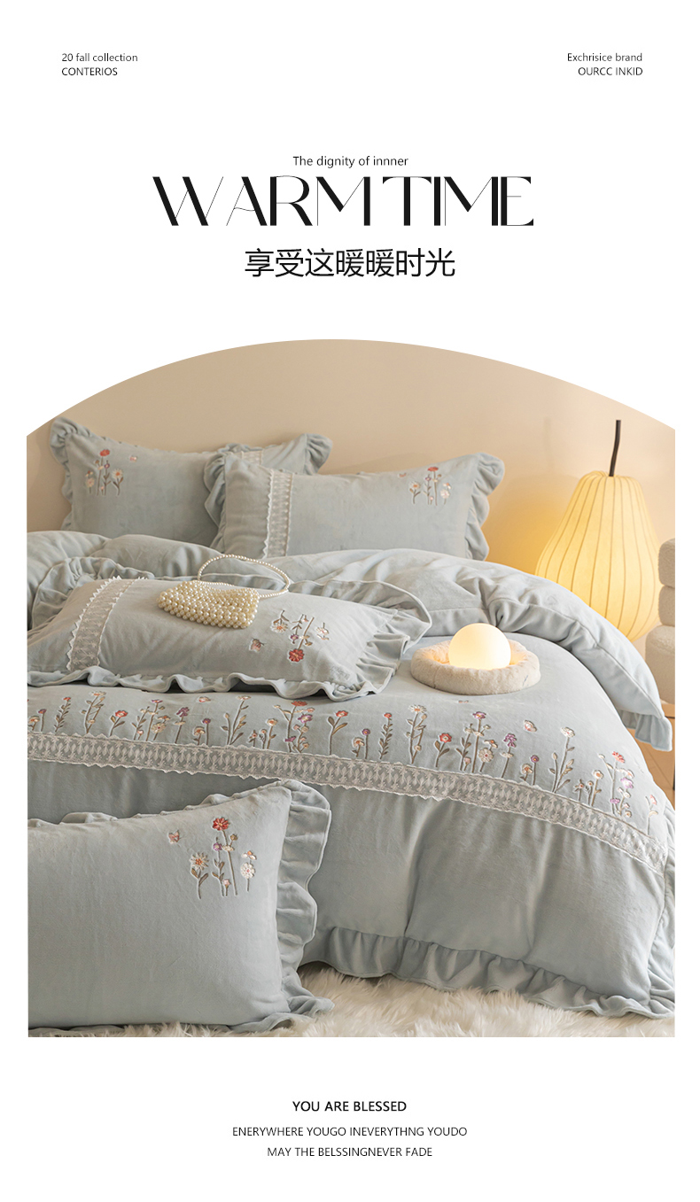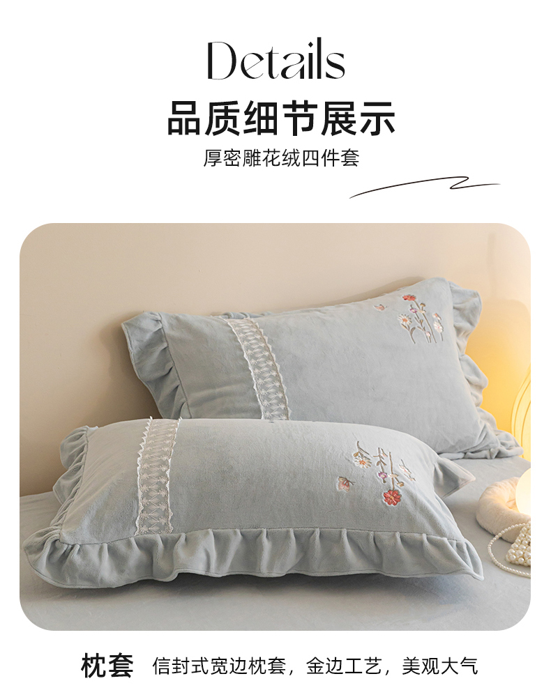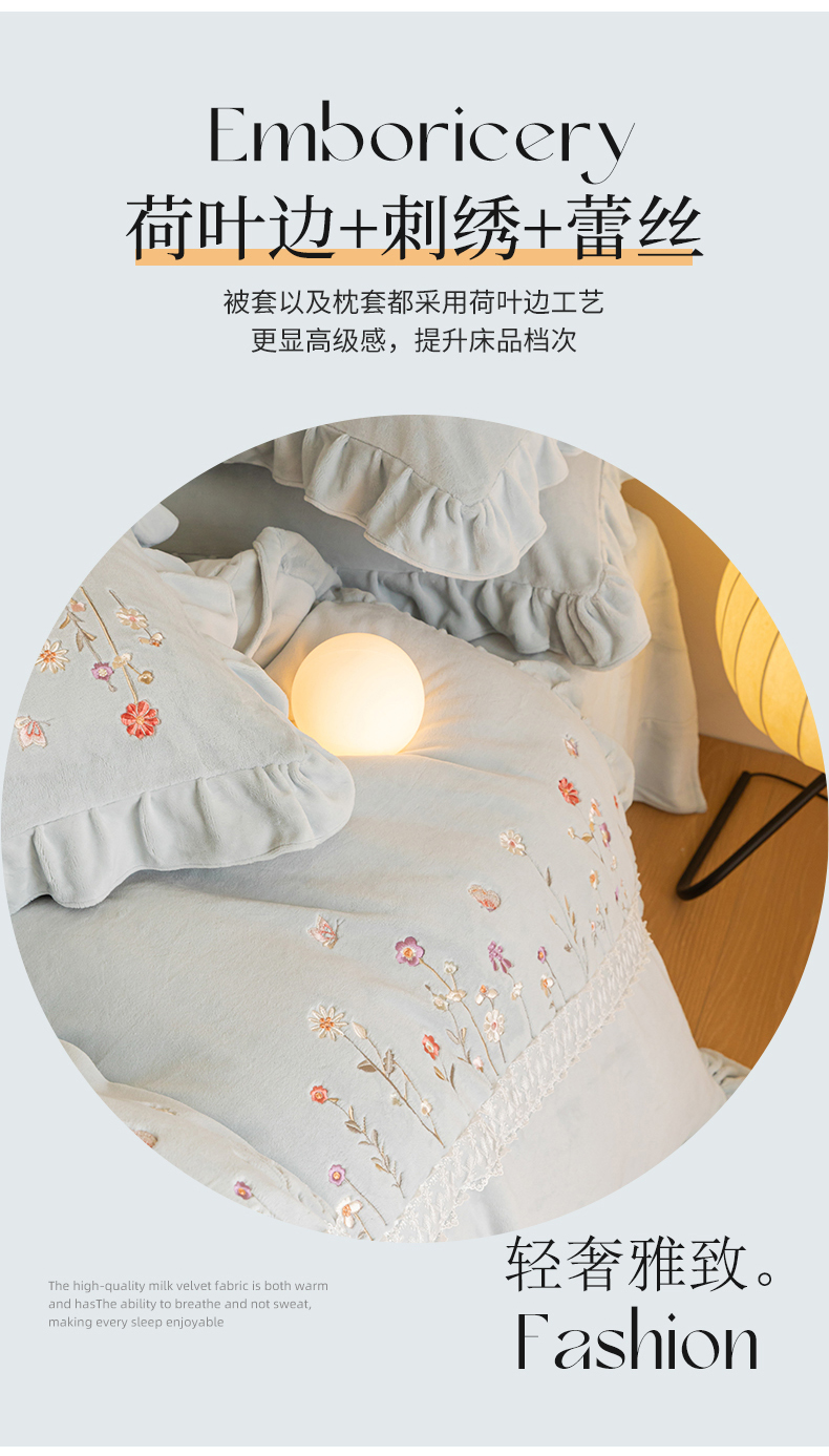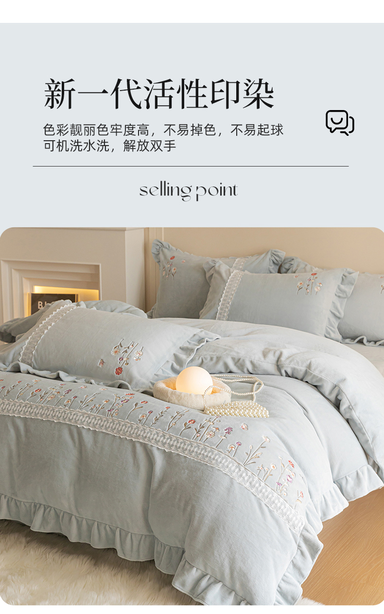 (总)艾唯希家纺 2025新款韩版全消光雕花绒花边四件套牛奶绒-铃兰花边系列,铃兰-绿,铃兰-米,铃兰-粉,铃兰-浅紫,铃兰-蓝