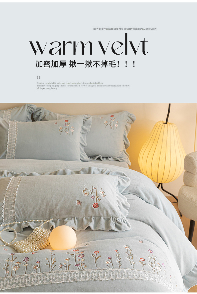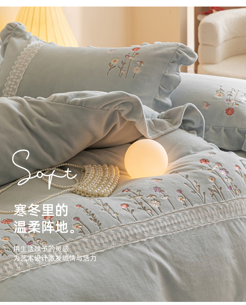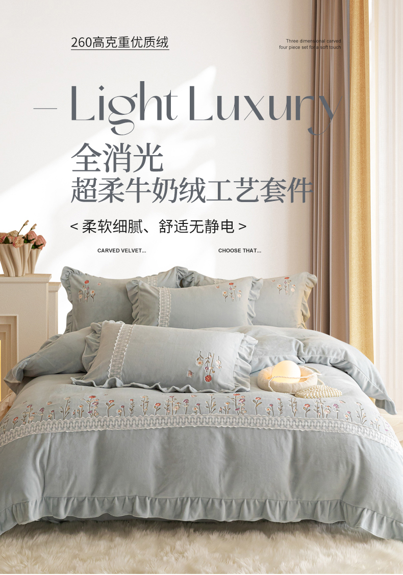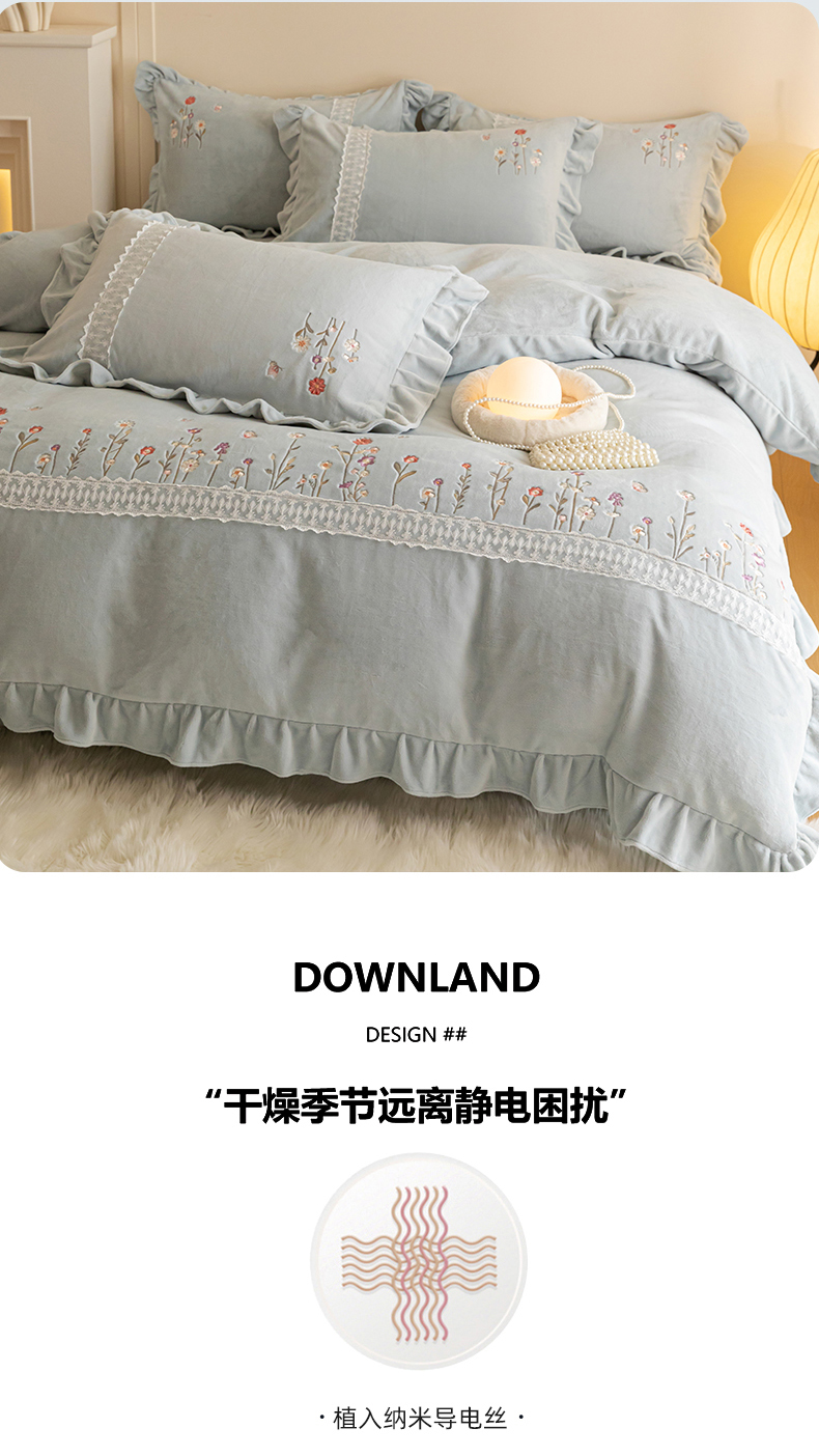 (总)艾唯希家纺 2025新款韩式牛奶雕花绒工艺全消光立体刺绣公主风四件套-忆江南,忆江南-粉,忆江南-蓝,忆江南-紫