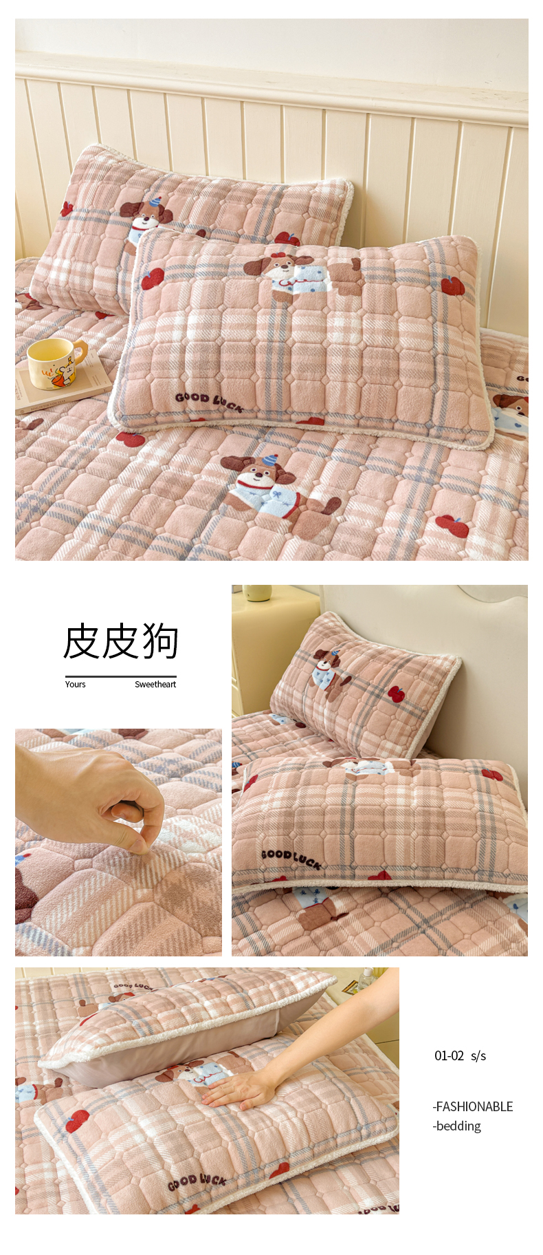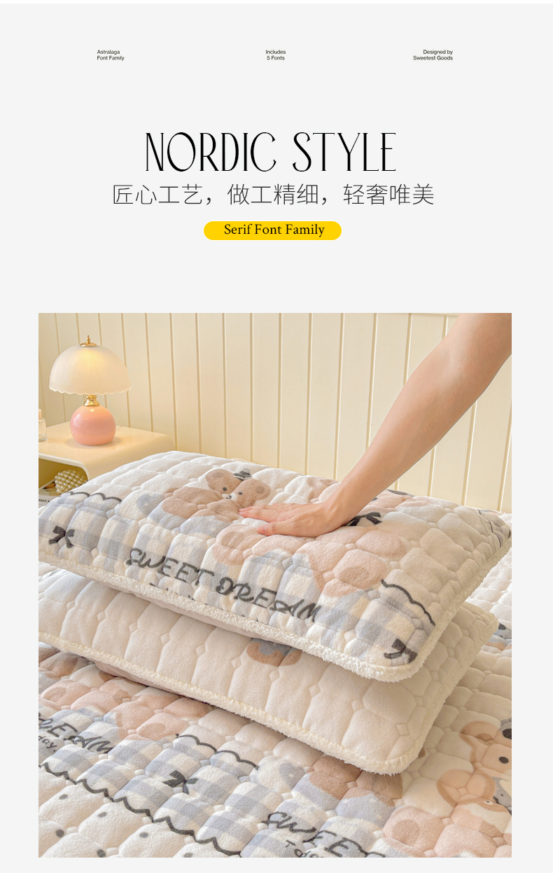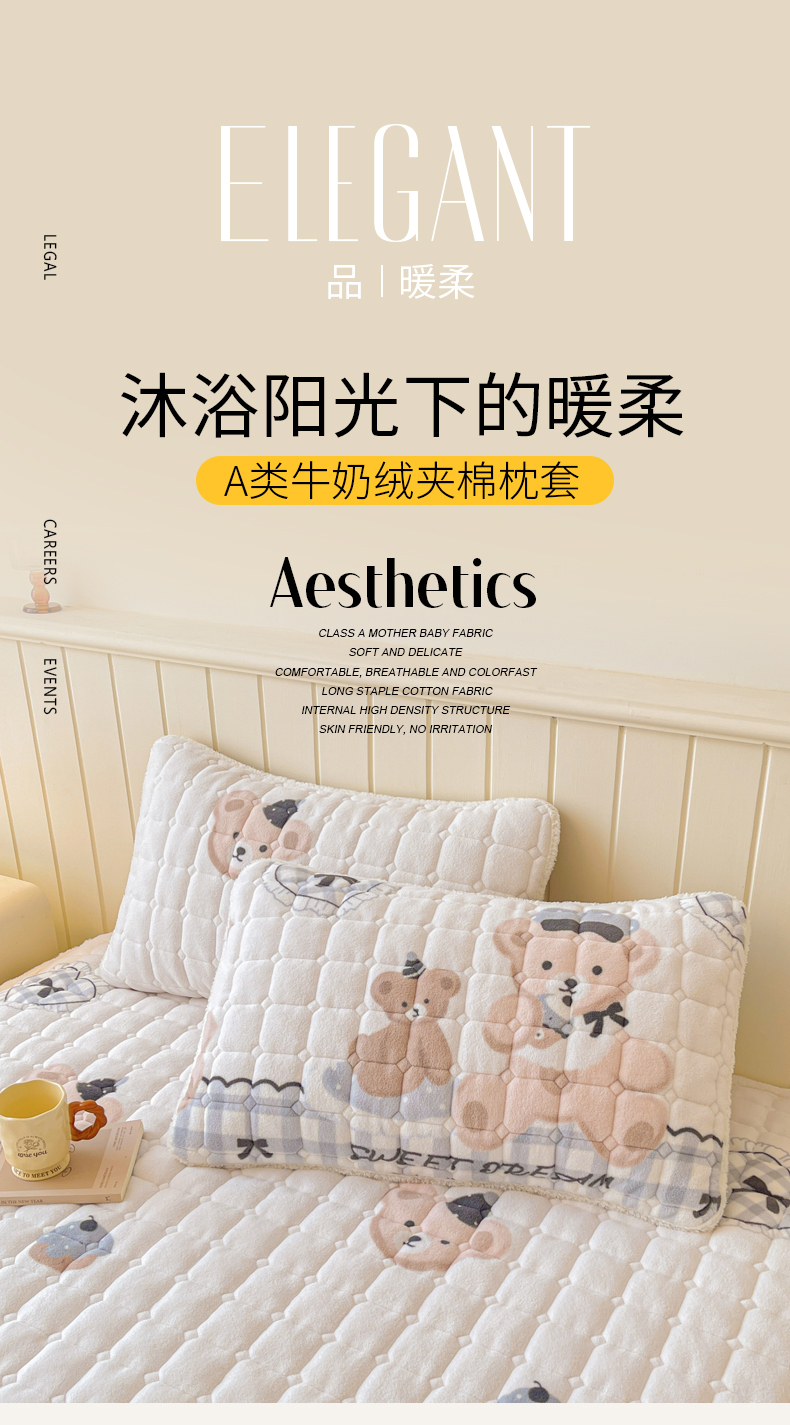 商品名称:LIFE.丽芙 2025秋冬新款A类牛奶绒加厚保暖夹棉枕套-包边款 安心熊仔