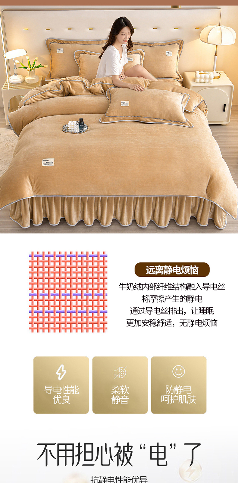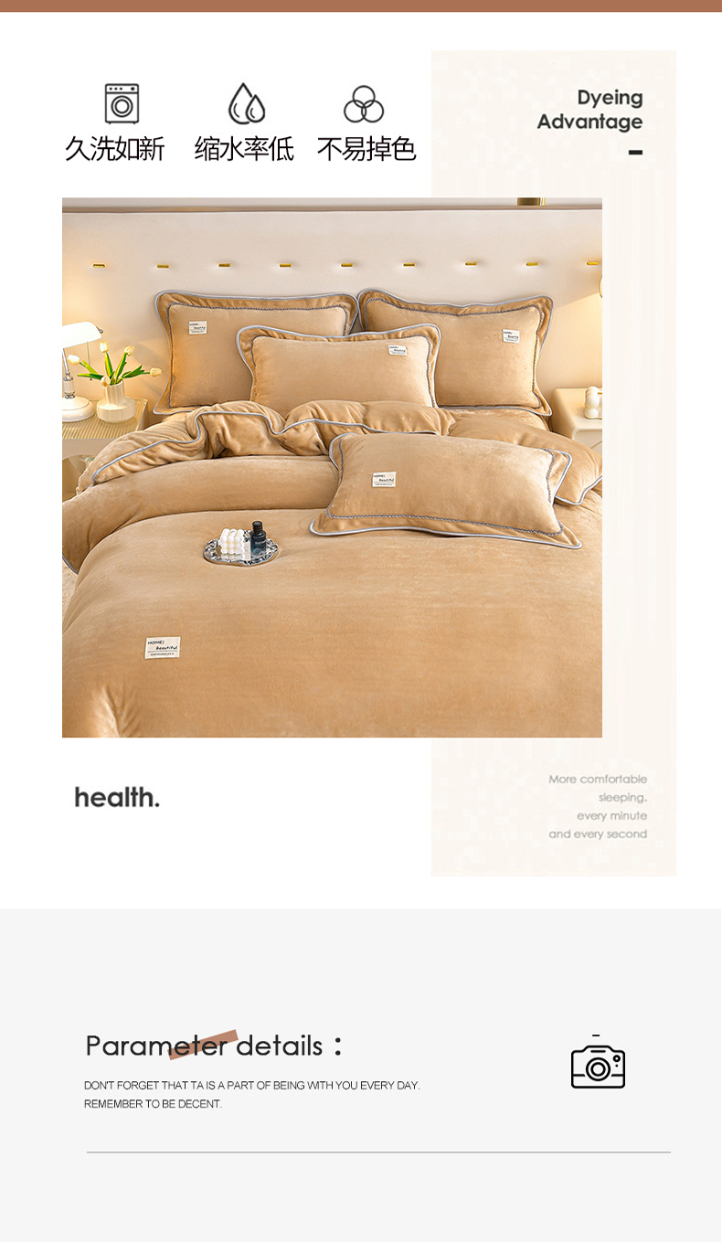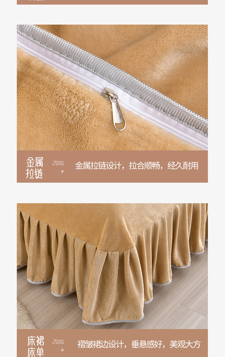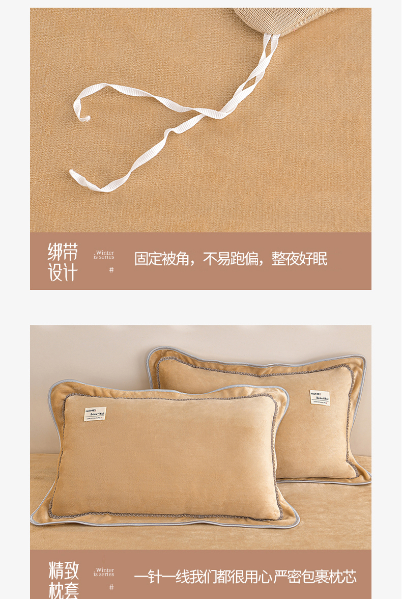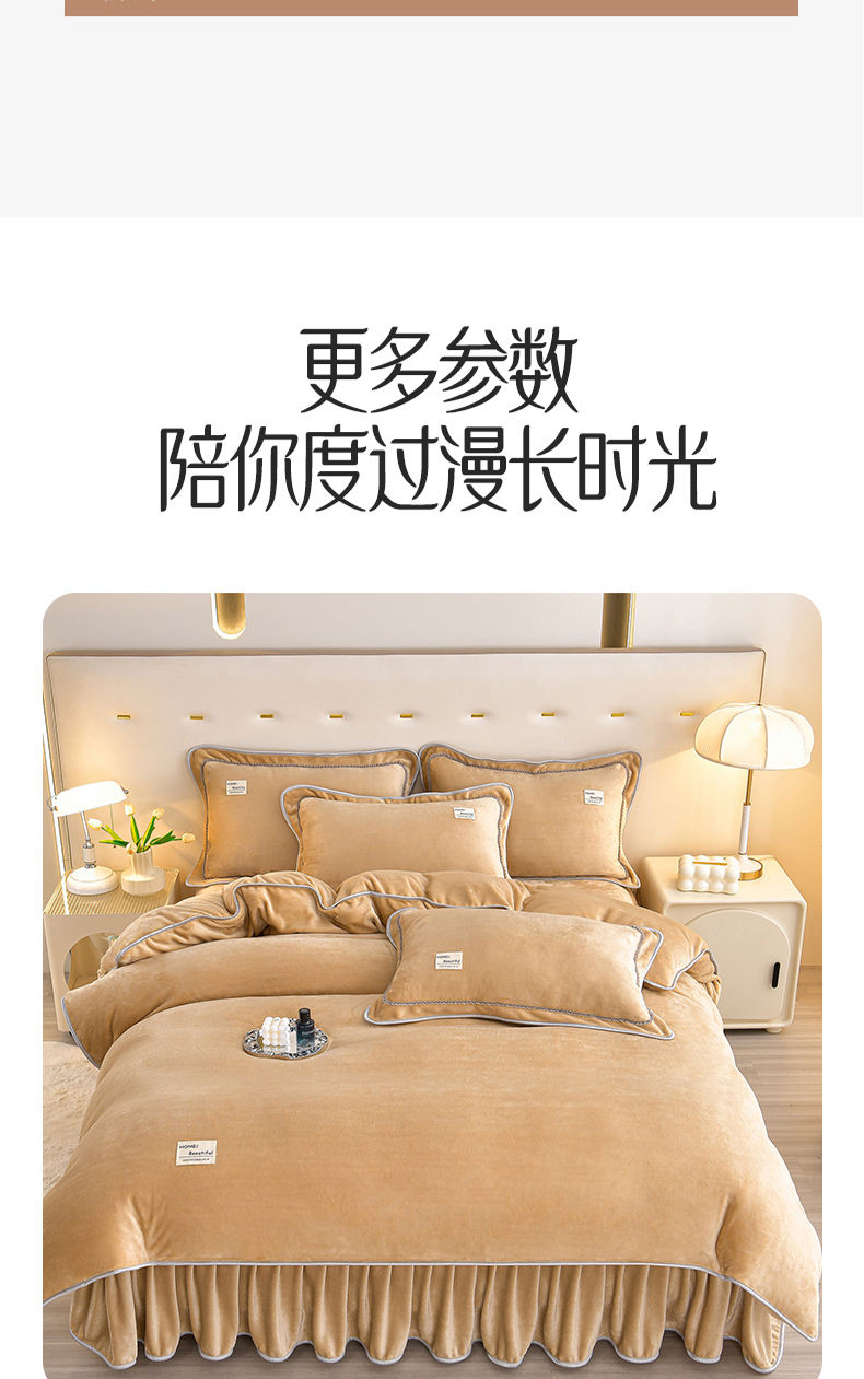 商品名称:缘莉娜家纺 2025高克重8斤牛奶绒四件套金貂绒法莱绒加厚保暖直播电商爆款 浅驼色