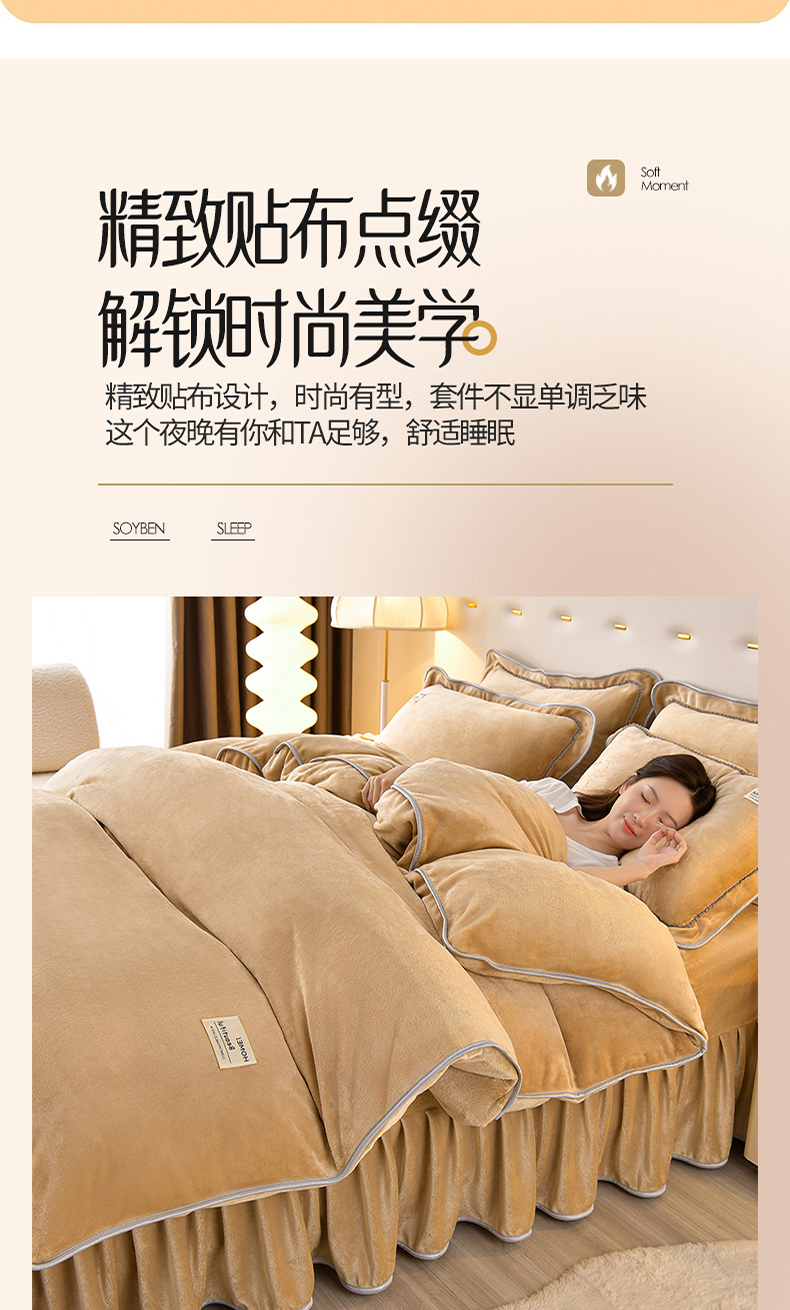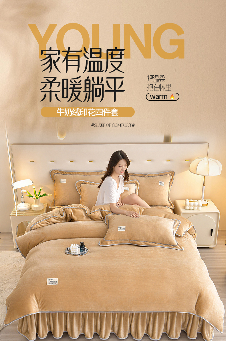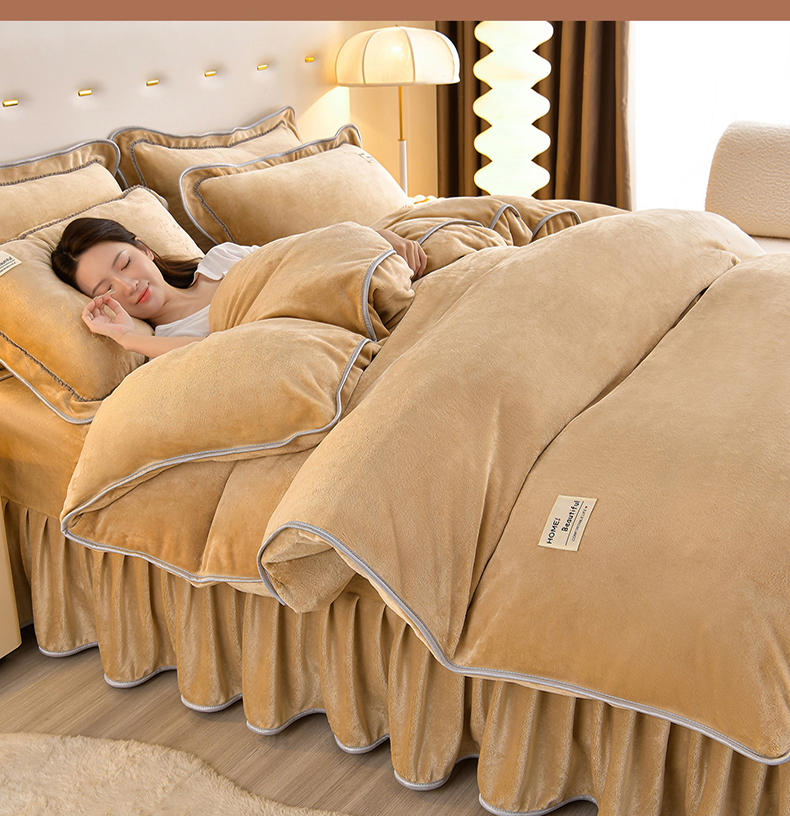 缘莉娜家纺 2025高克重8斤牛奶绒四件套金貂绒法莱绒加厚保暖直播电商爆款 浅驼色