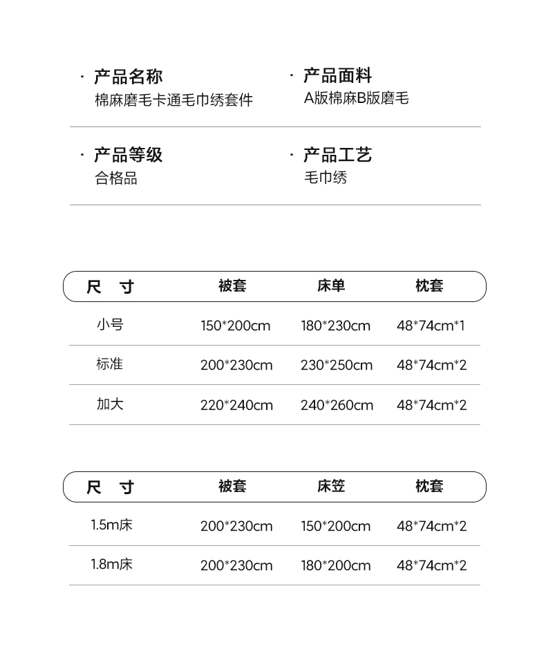 【床笠款】1.8四件套-被套200x230 | ¥155.00 |
