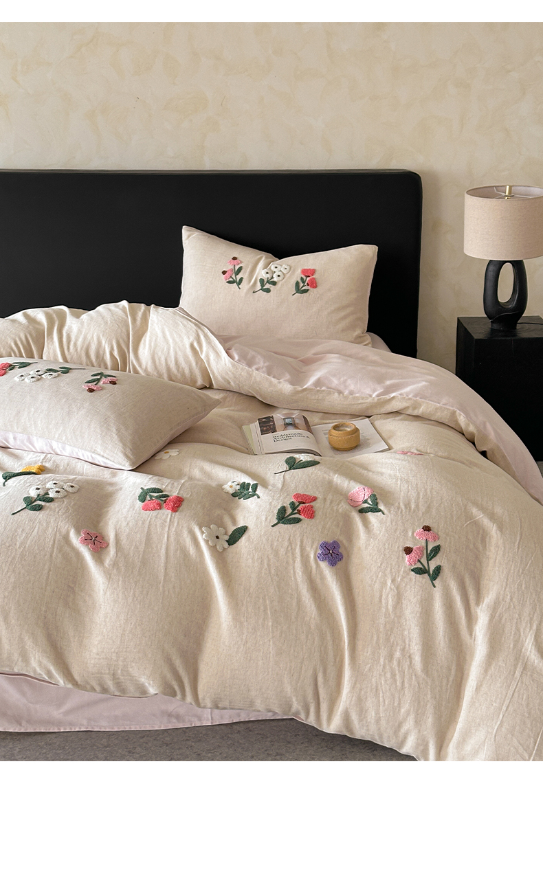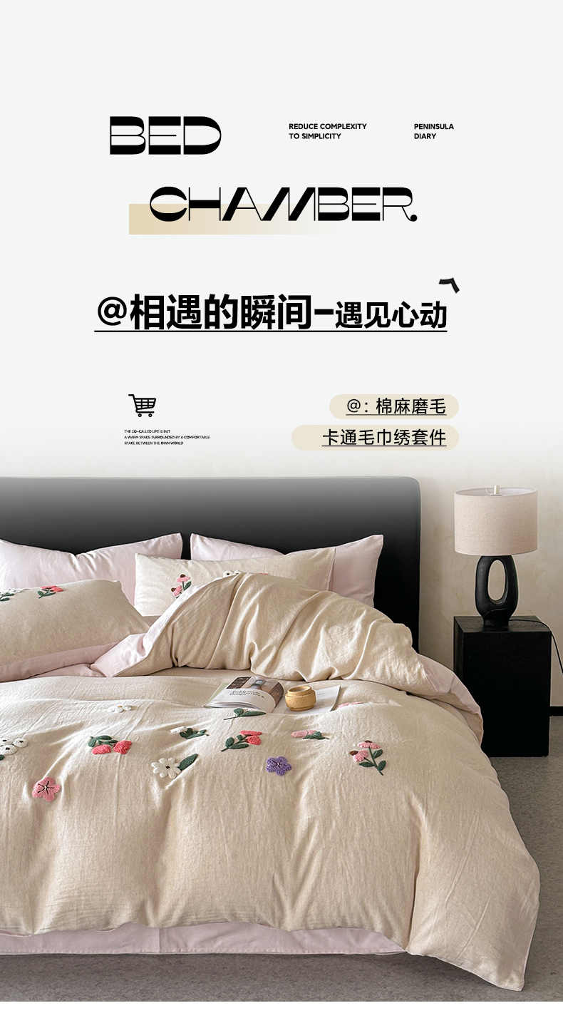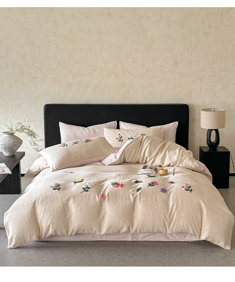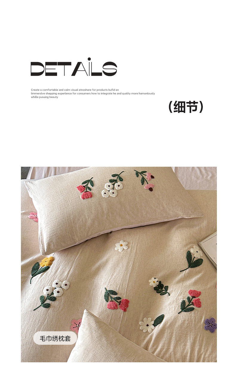 当前位置: 91家纺网 > 商品网购 > 床品套件 > 四件套 > 其它四件套 > 雅居纺家纺 2025新款棉麻+全棉磨毛毛巾绣四件套 花锦-白粉