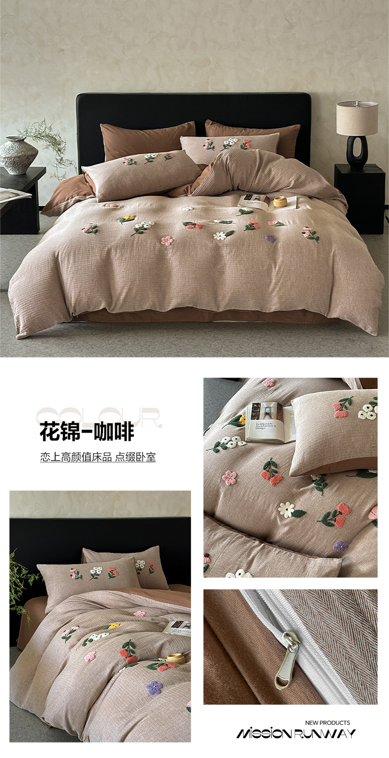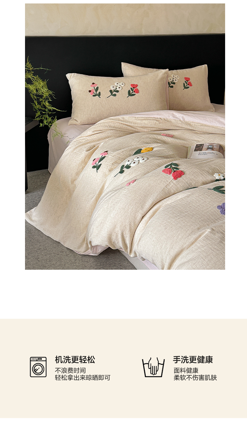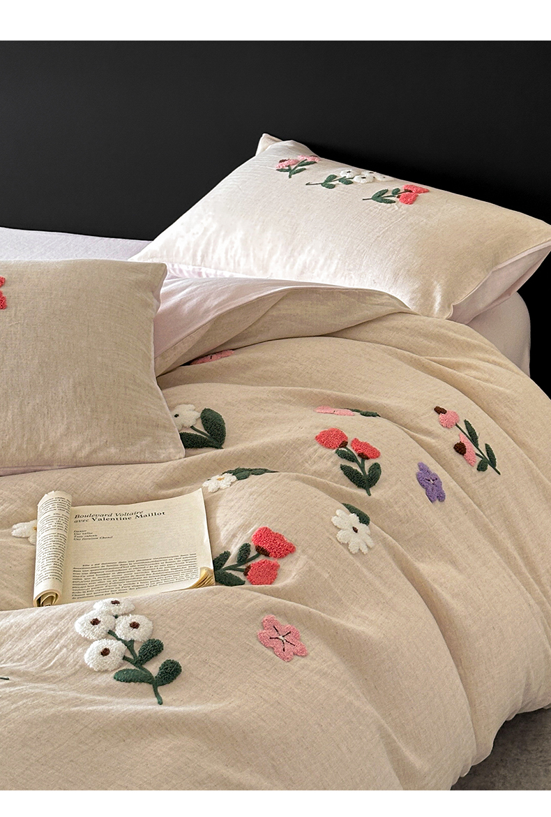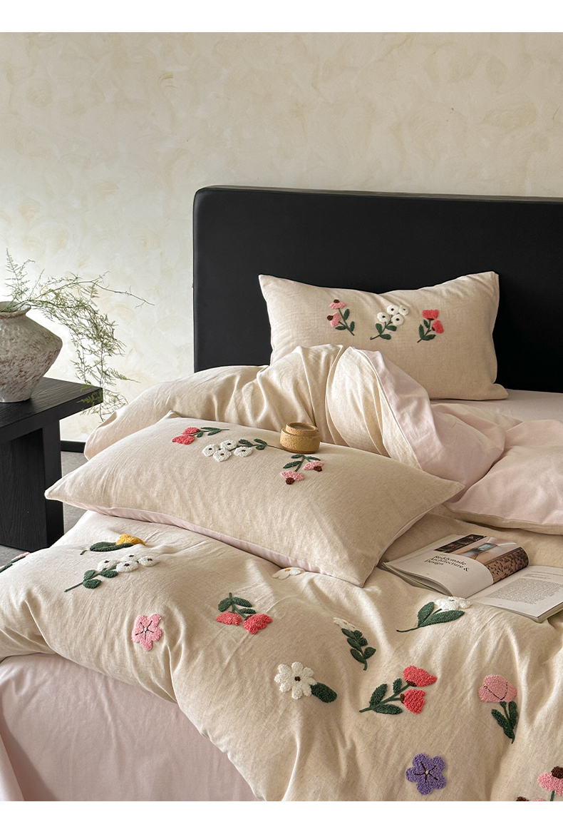 当前位置: 91家纺网 > 商品网购 > 床品套件 > 四件套 > 其它四件套 > 雅居纺家纺 2025新款棉麻+全棉磨毛毛巾绣四件套 花锦-白粉