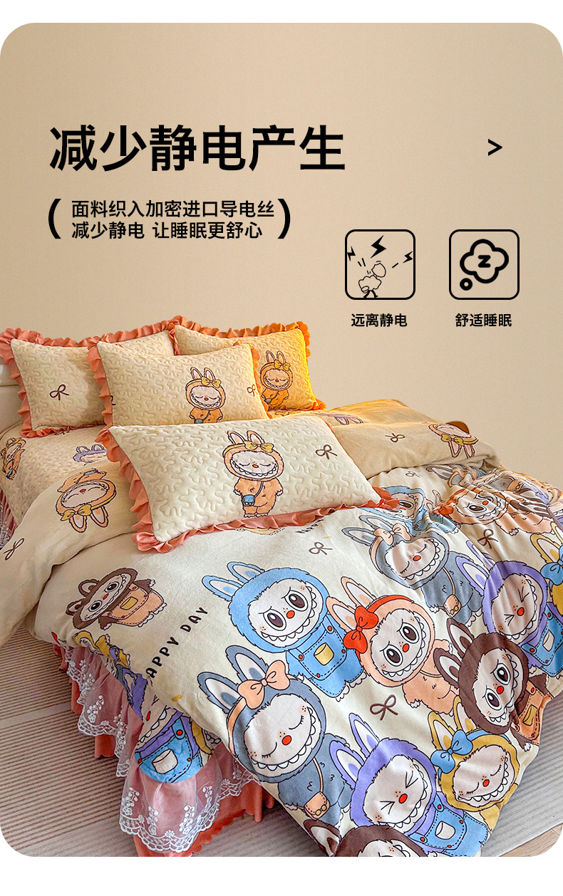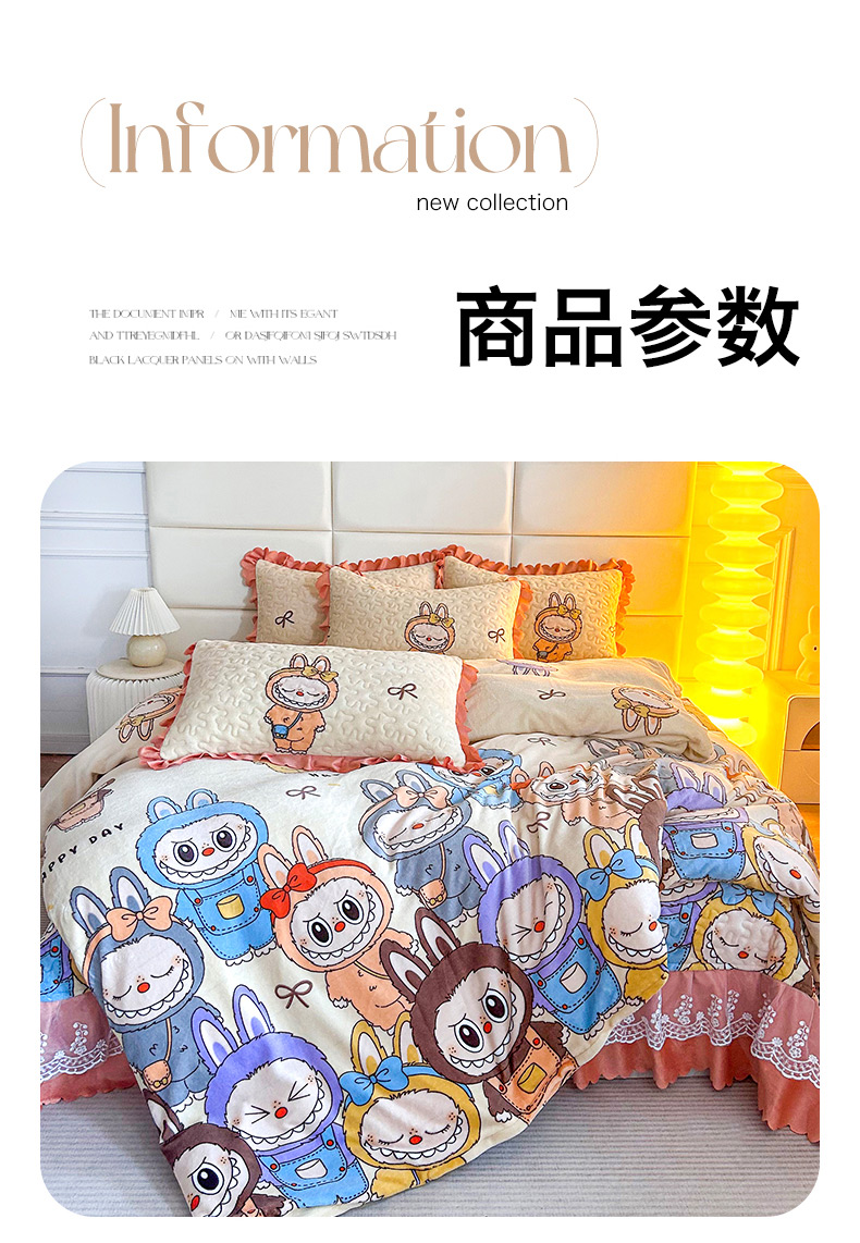 当前位置: 91家纺网 > 商品网购 > 床品套件 > 四件套 > 牛奶绒四件套 > 梦柏家纺 2025新款牛奶绒夹棉床盖四件套 拉布布