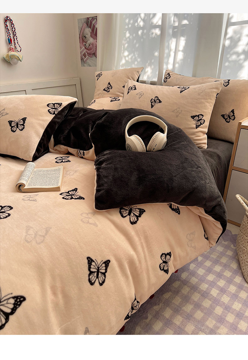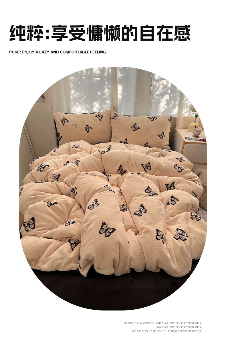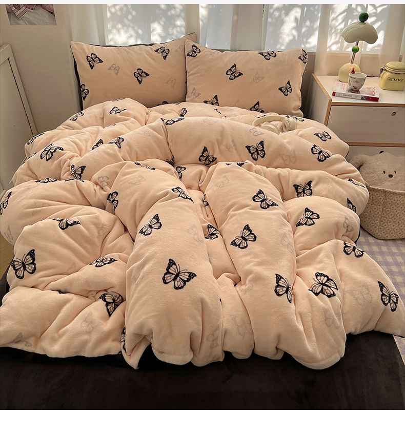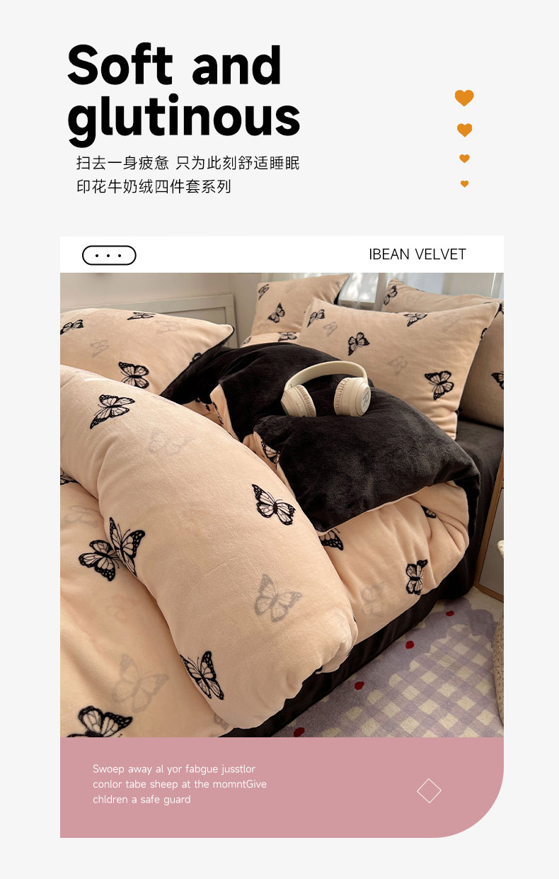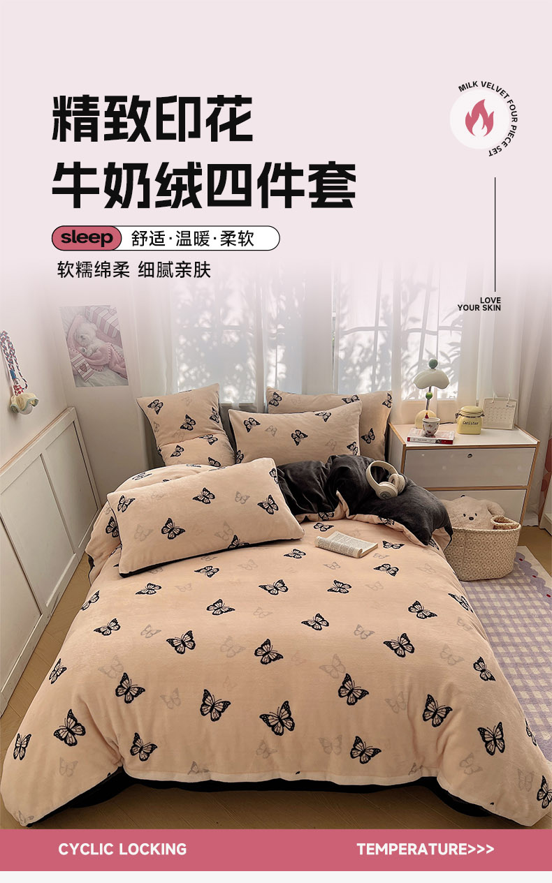 当前位置: 91家纺网 > 商品网购 > 床品套件 > 四件套 > 牛奶绒四件套 > 红嘴企鹅 2025新款精致印花牛奶绒四件套 牛奶绒-蝶梦