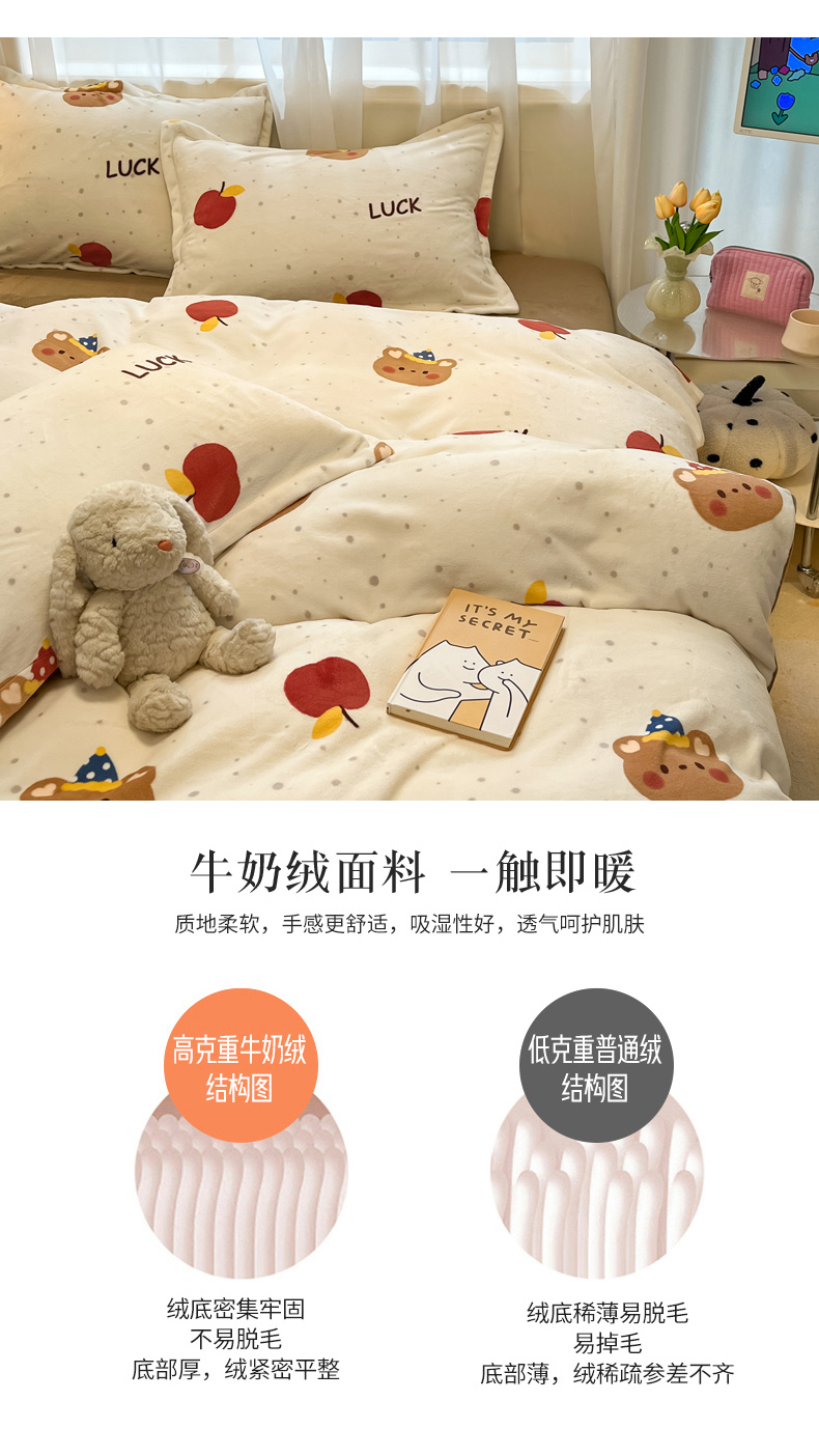 当前位置: 91家纺网 > 商品网购 > 床品套件 > 四件套 > 牛奶绒四件套 > 慕尚家纺 2025新款高克重田园花卉类加厚牛奶绒3.5kg四件套 苹果小熊
