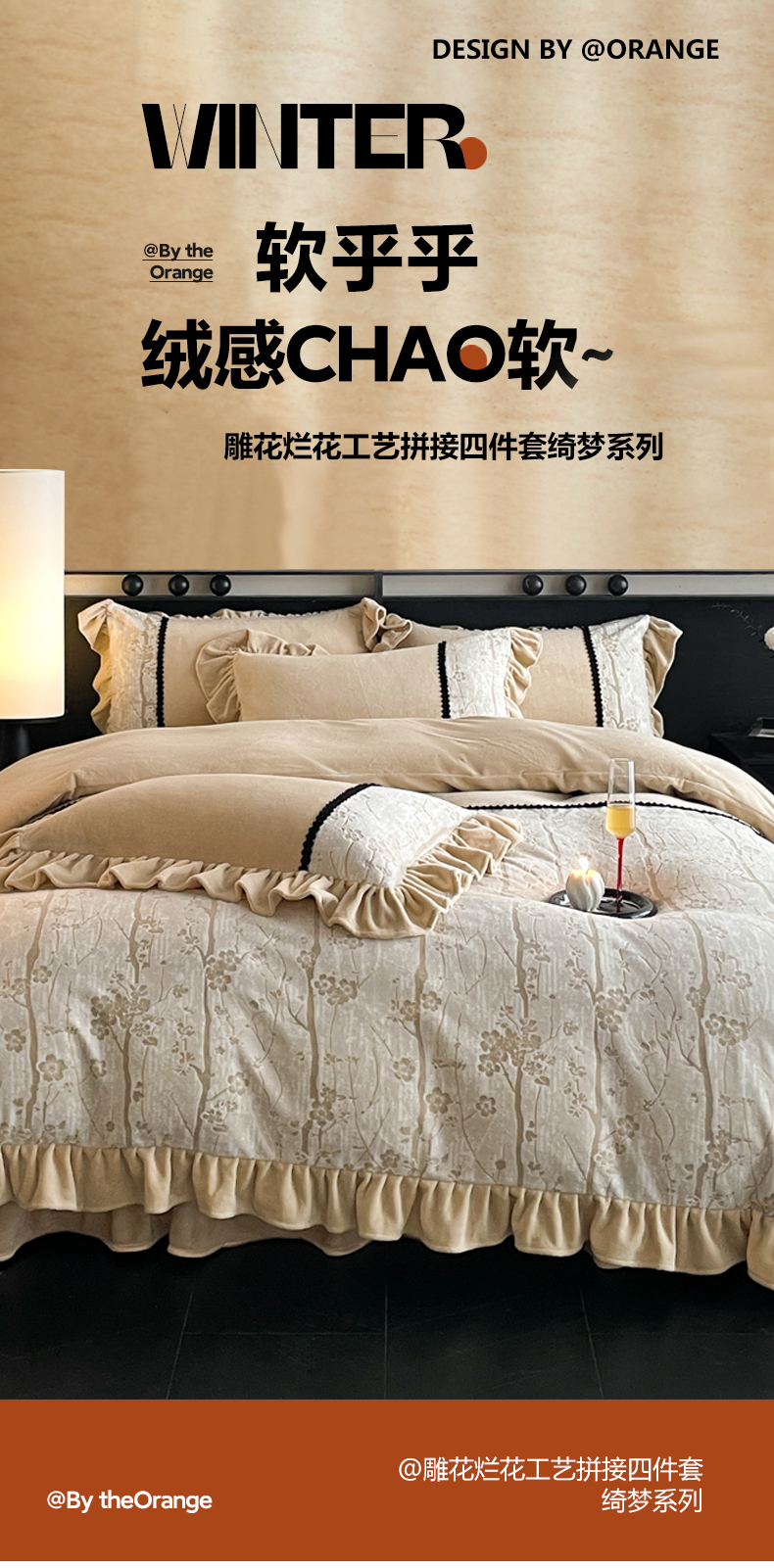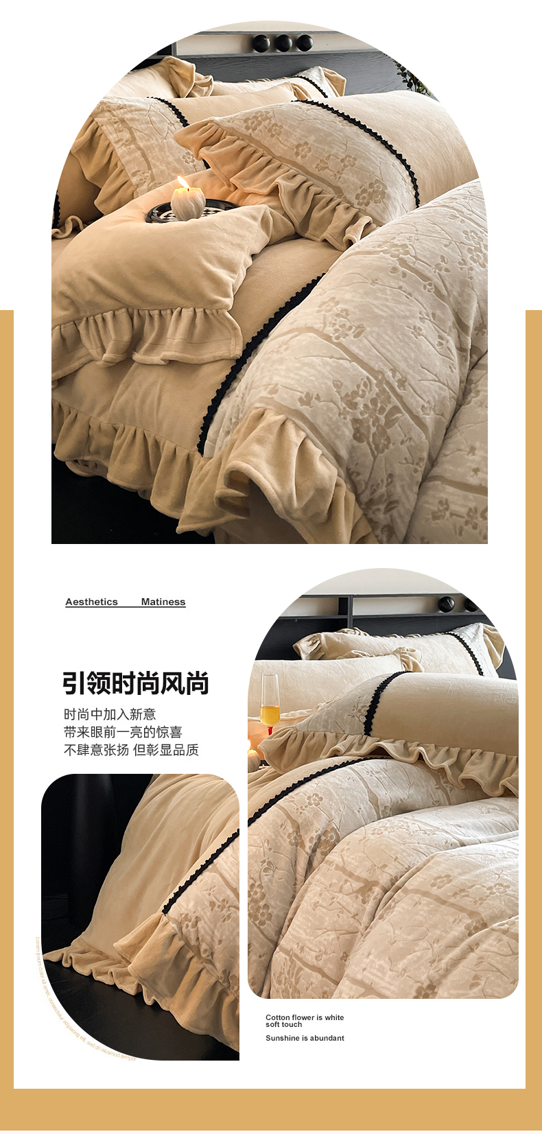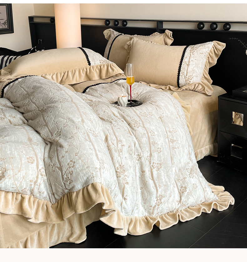 (总)慕木家纺 2025新款A类高克重高端雕花绒工艺款刺绣拼接四件套锦绣芳华系列(直播热款)提供买家秀,锦绣芳华-月岩灰,锦绣芳华-卡其,锦绣芳华-玉粉