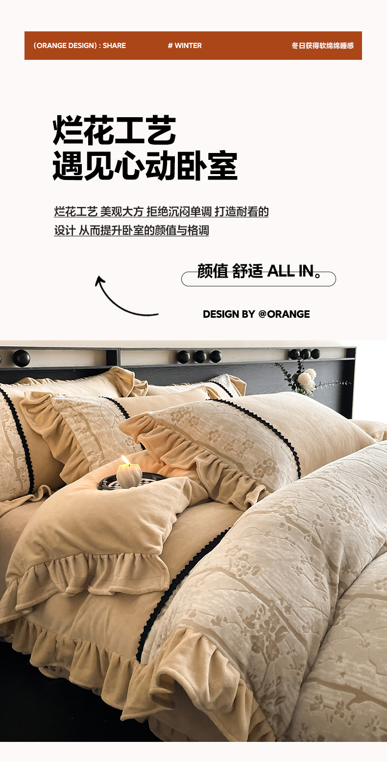 慕木家纺 2025新款A类高克重高端雕花烂花AB版工艺款拼接四件套绮梦系列(直播热款) 浅梦絮语-咖