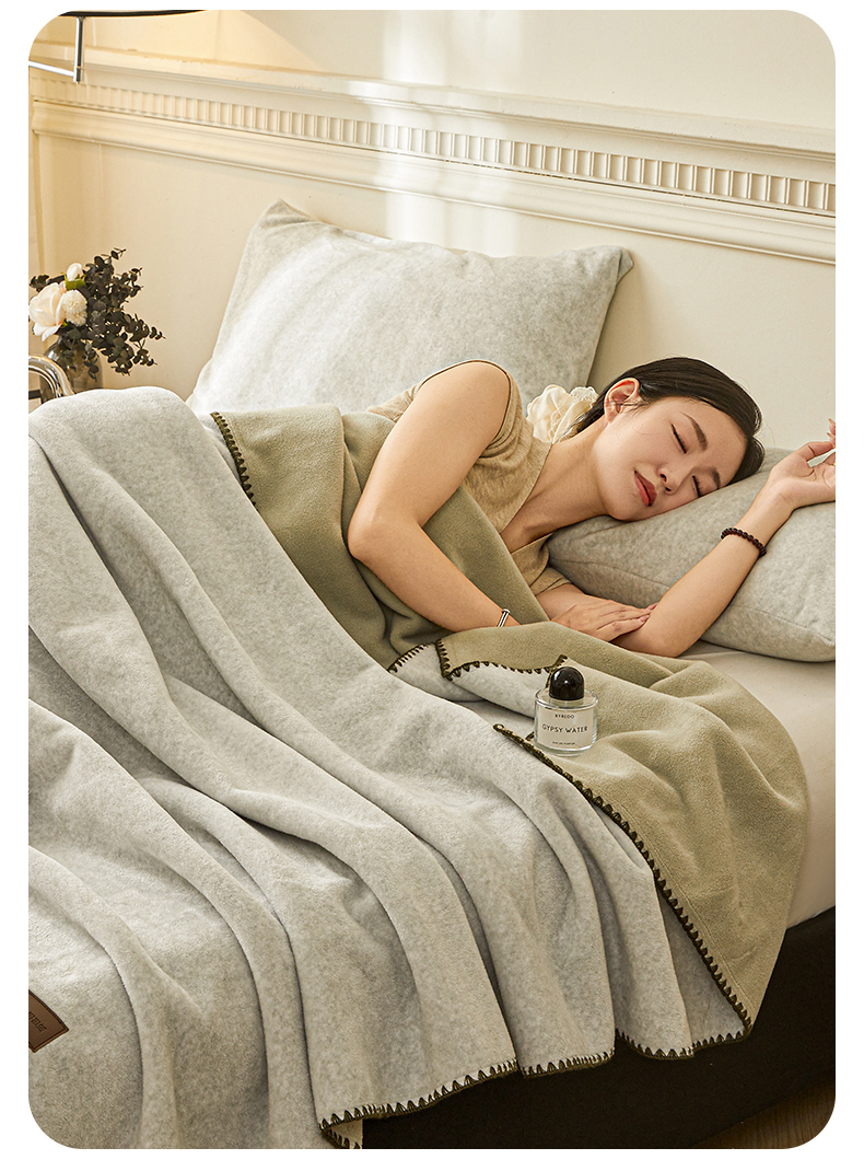 雯豆家纺 2025新款獭獭绒毛毯双层加厚纯色毯子高档高克重盖毯 莫兰迪绿