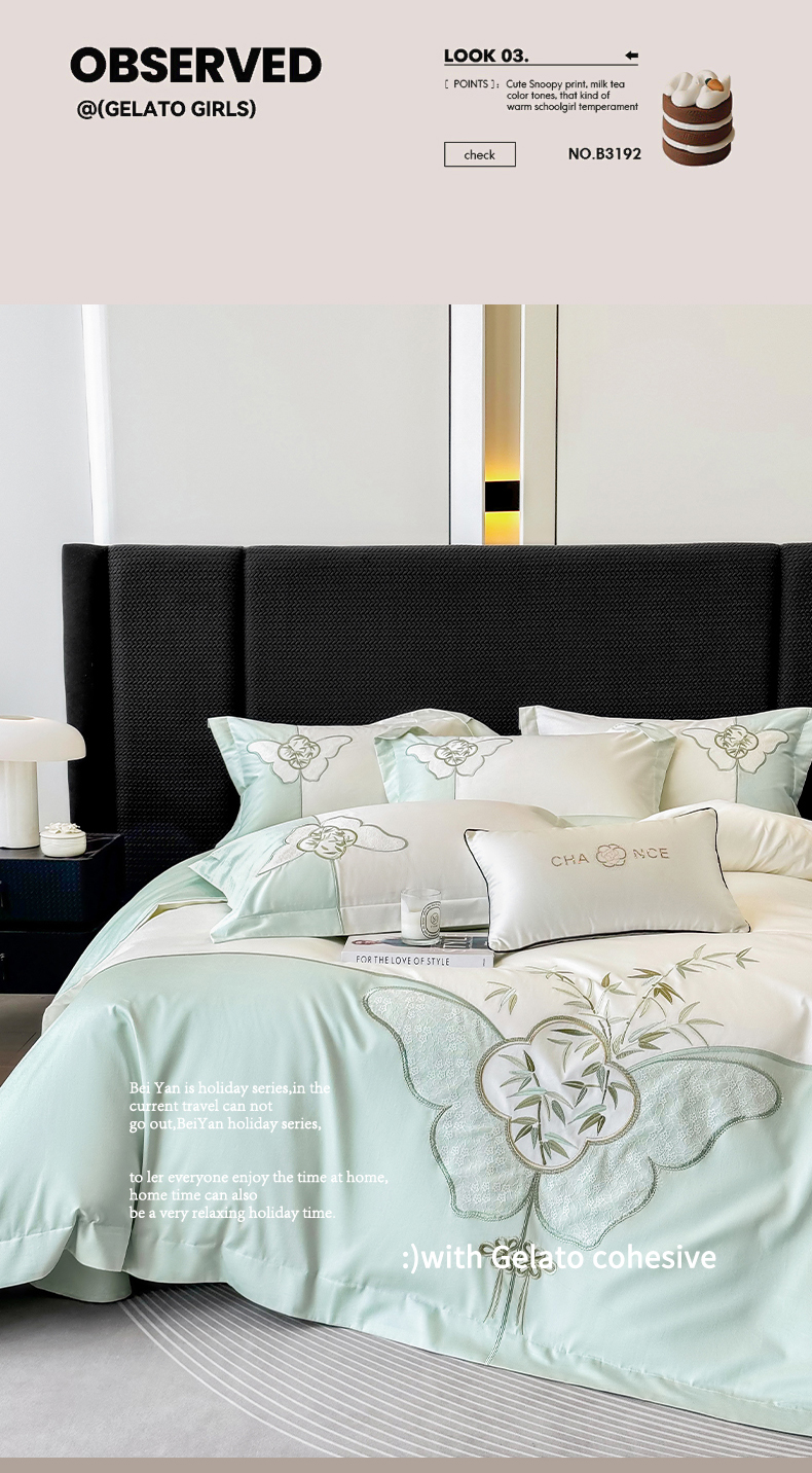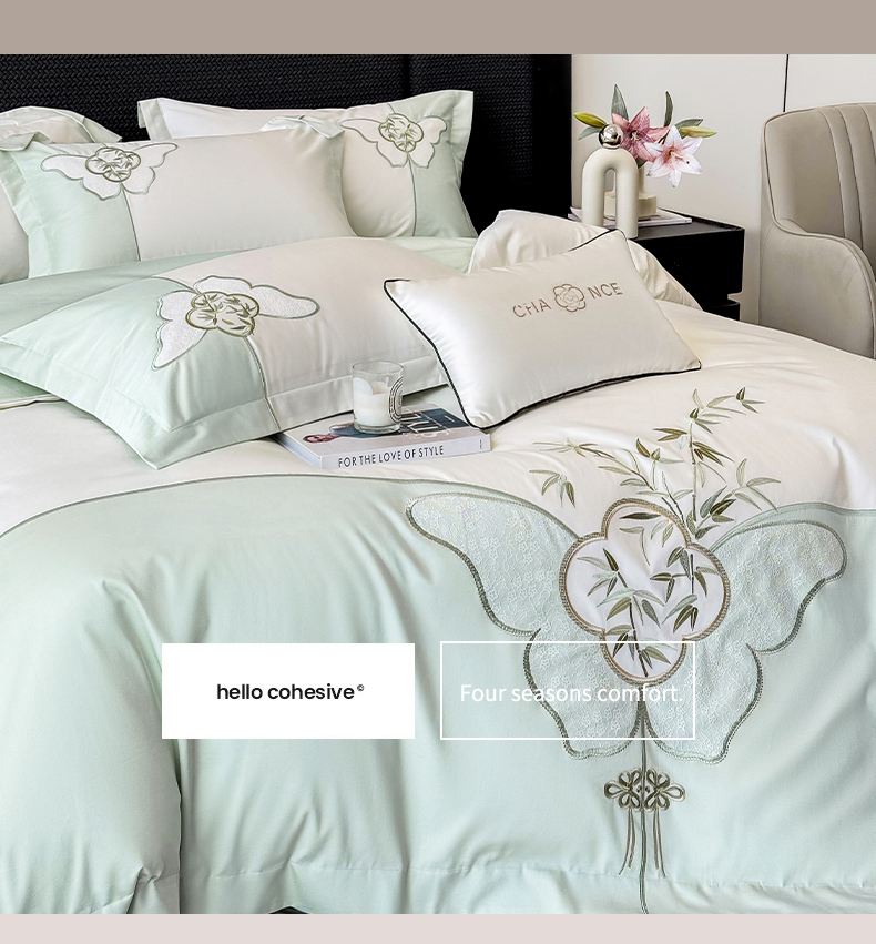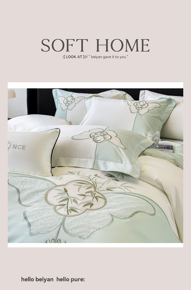 (总)丞音家纺 2025新款高档包装A类母婴级双面全棉蝴蝶刺绣纯棉长绒棉绣花四件套,梦蝶-抹茶绿,梦蝶-冰莓粉,梦蝶-时尚灰,梦蝶-雾霾蓝