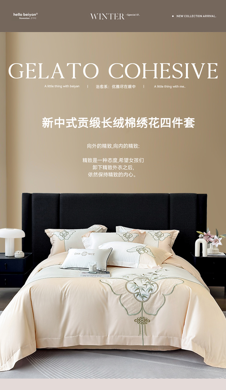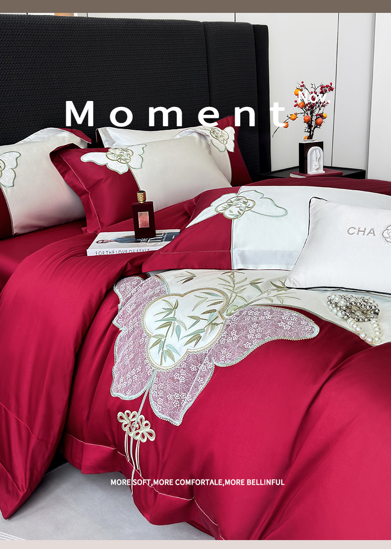 (总)丞音 新中式轻奢风A类长绒棉50s双股100支贡缎绣花全棉被套刺绣纯棉四件套床笠高档礼盒包装