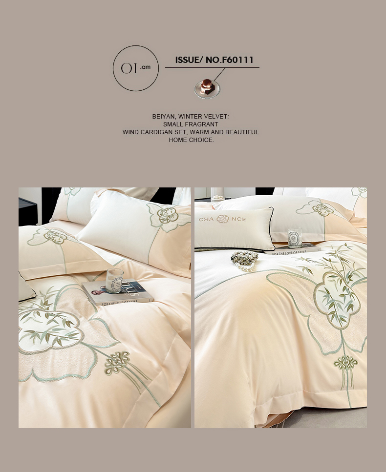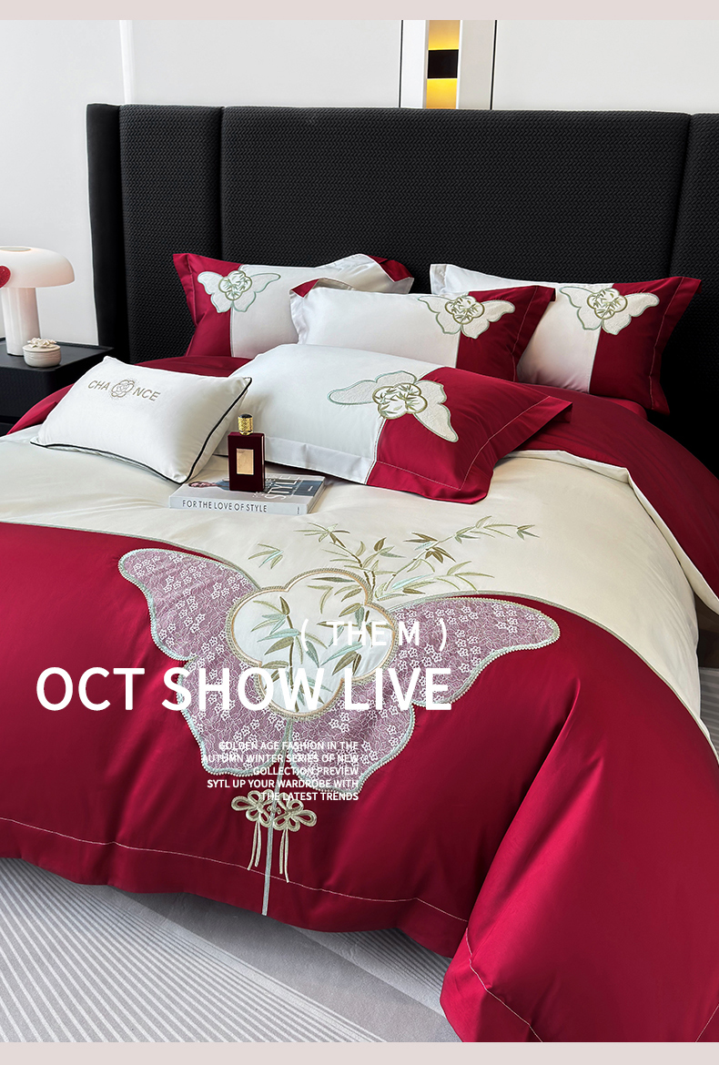 商品名称:(总)丞音 新中式轻奢风A类长绒棉50s双股100支贡缎绣花全棉被套刺绣纯棉四件套床笠高档礼盒包装