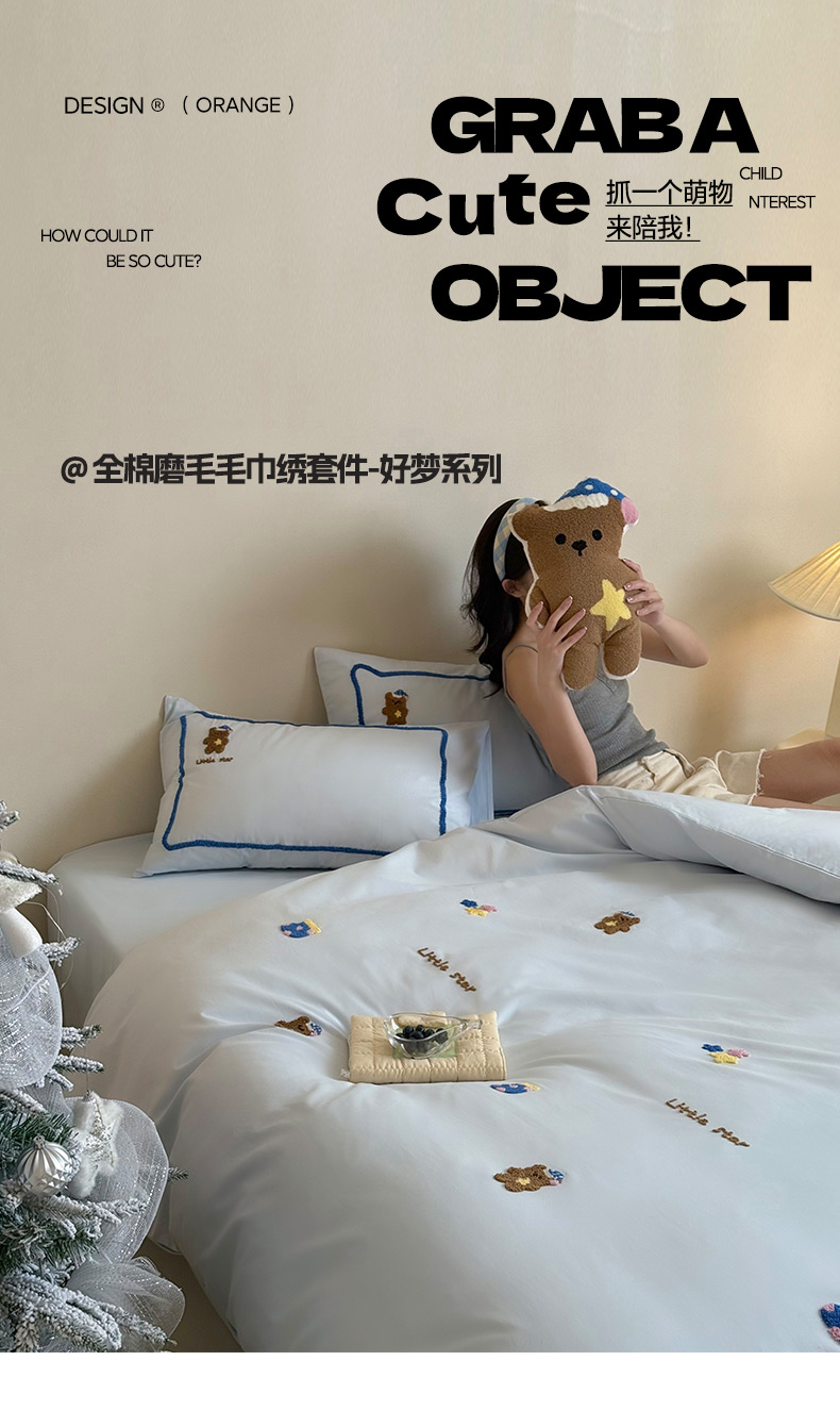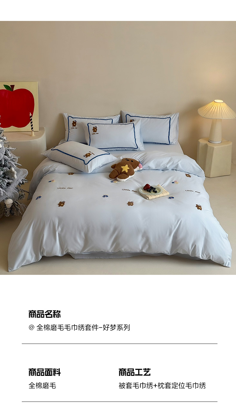 商品名称:(总)三味舒屋 2025新款好梦毛巾绣全棉纯棉磨毛四件套