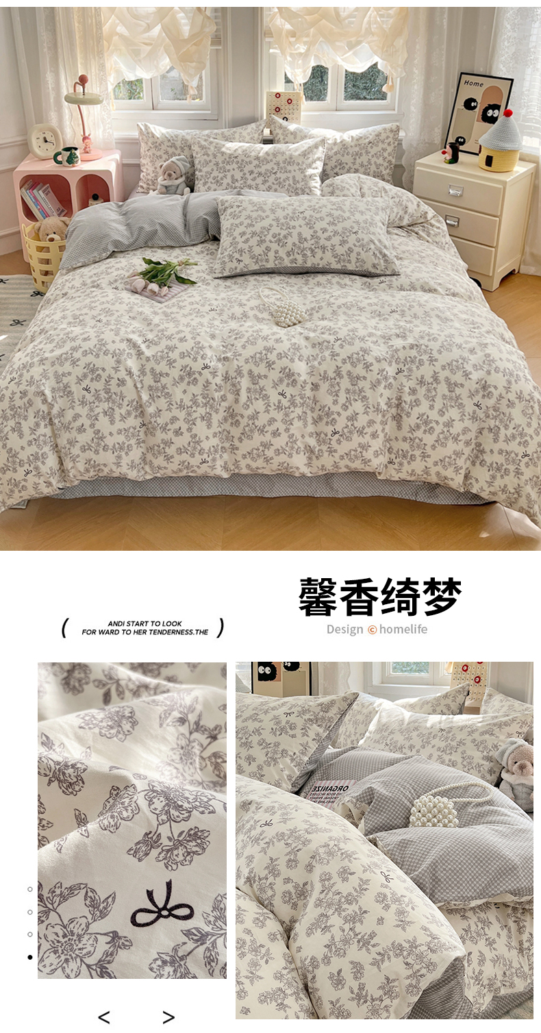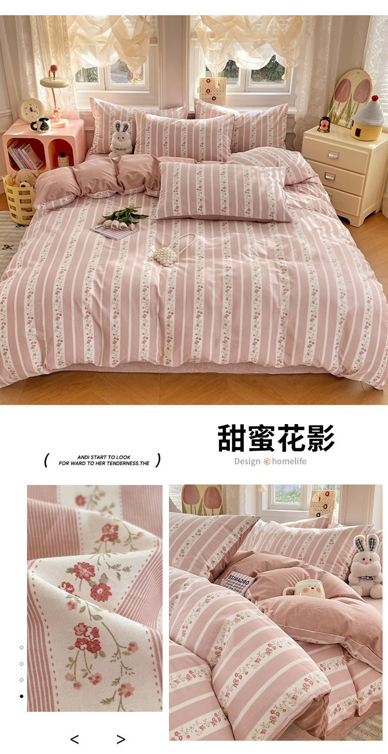 (总)2025新款13070全棉四件套加厚斜纹纯棉印花田园小清新床单被套枕套床上用品