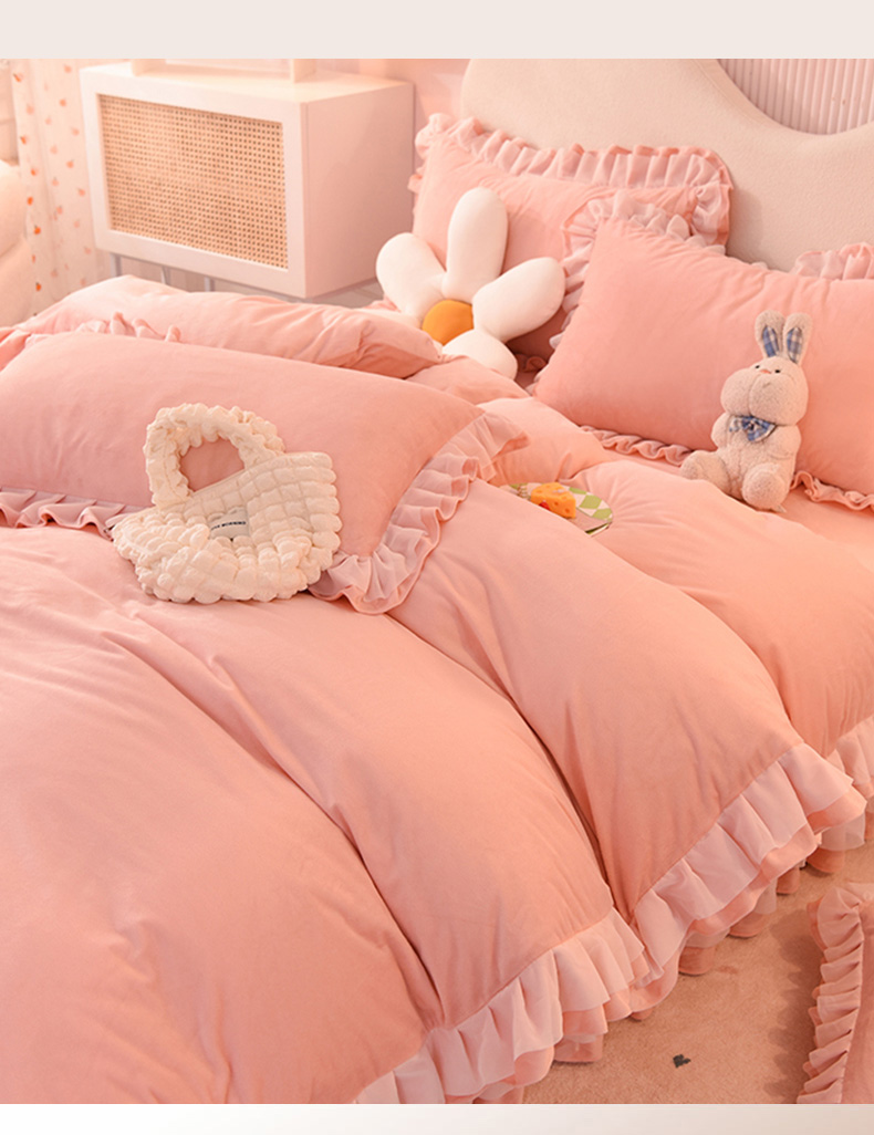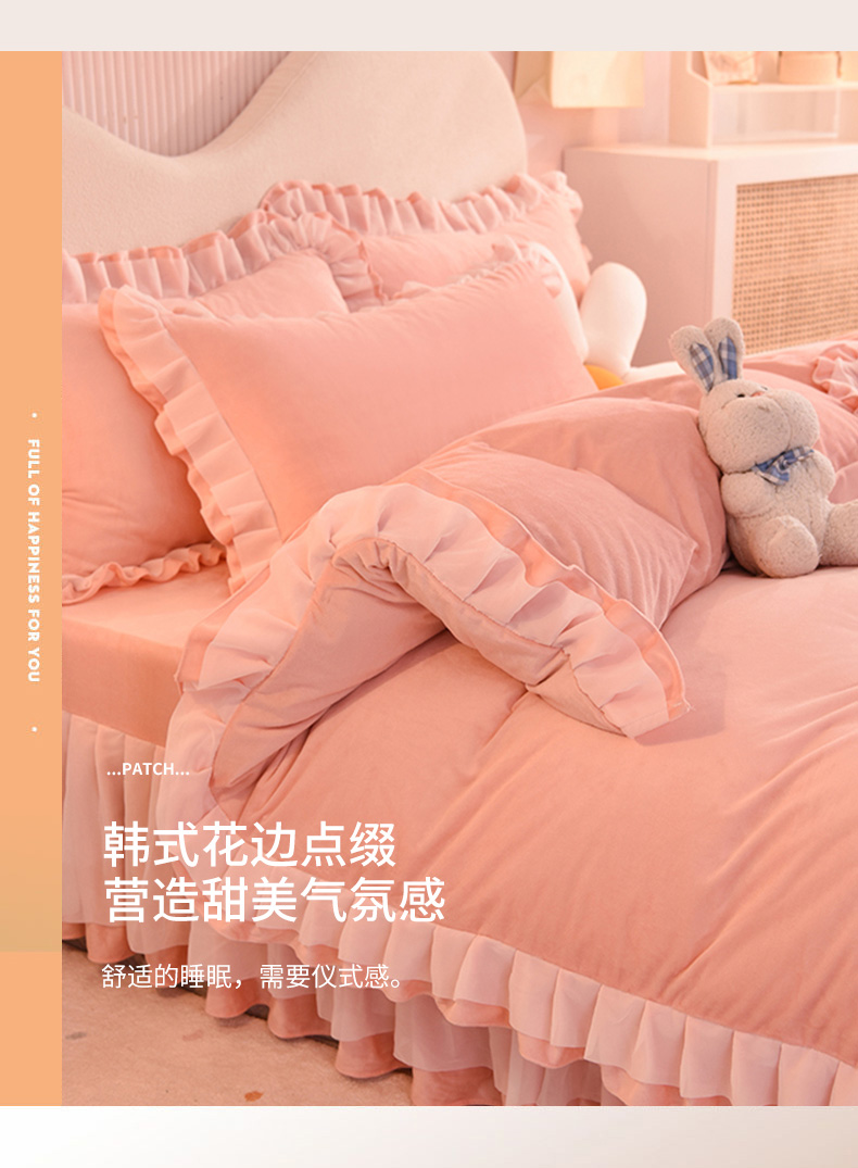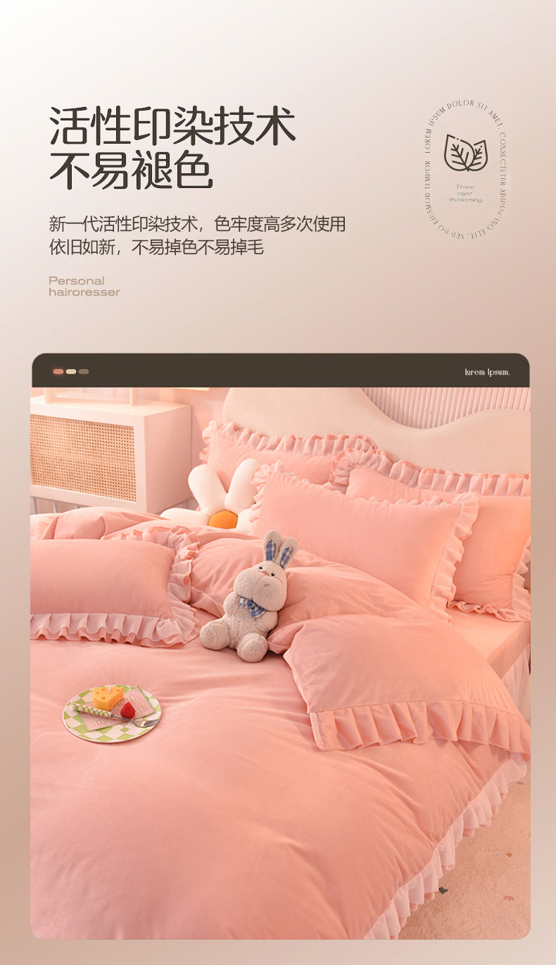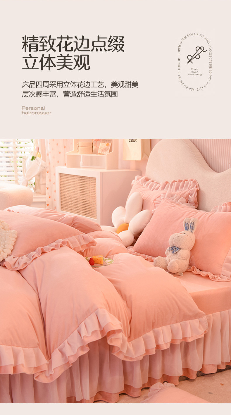 后庭寝室 2025新款韩式花边牛奶绒四件套-香香公主系列 香香公主-玉色